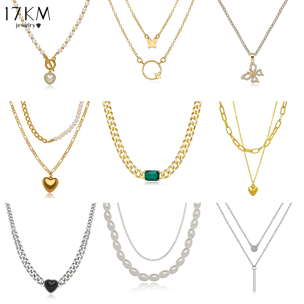 Kekurangan - Kekurangan membeli 17KM Korean Fashion Pearl Necklace Butterfly Heart Ring Pendant Necklaces Gold Silver Chain Choker Accessories Jewelry Party di Toko ini