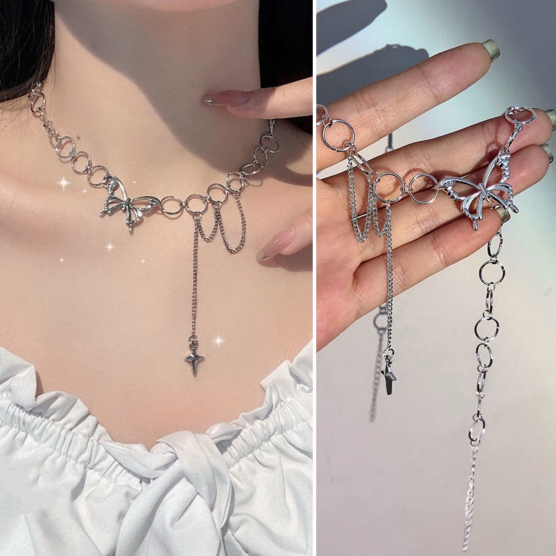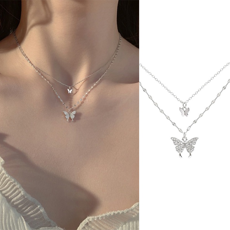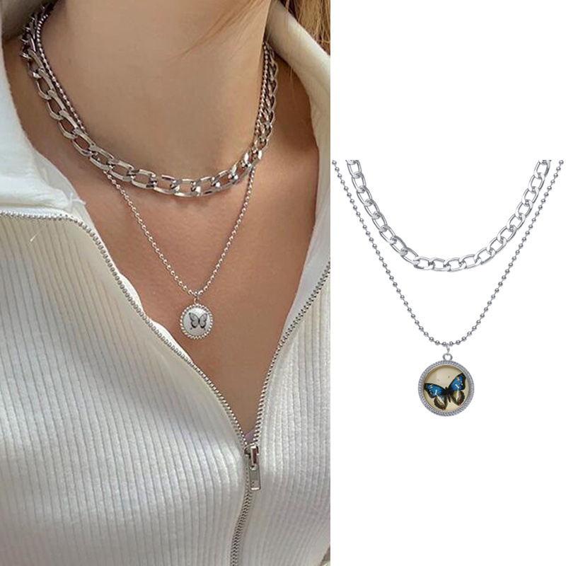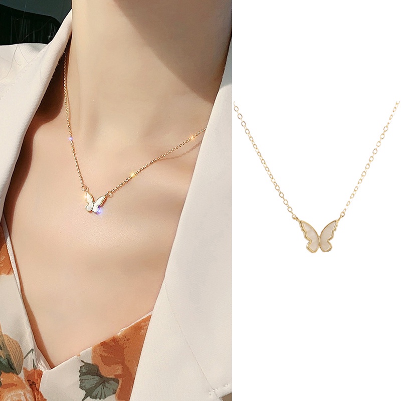 BAJ Kalung Kupu kupu Rantai Clavicle Gradien Biru Gelang Gaya Untuk Wanita Korean Fashion Aksesoris KL009