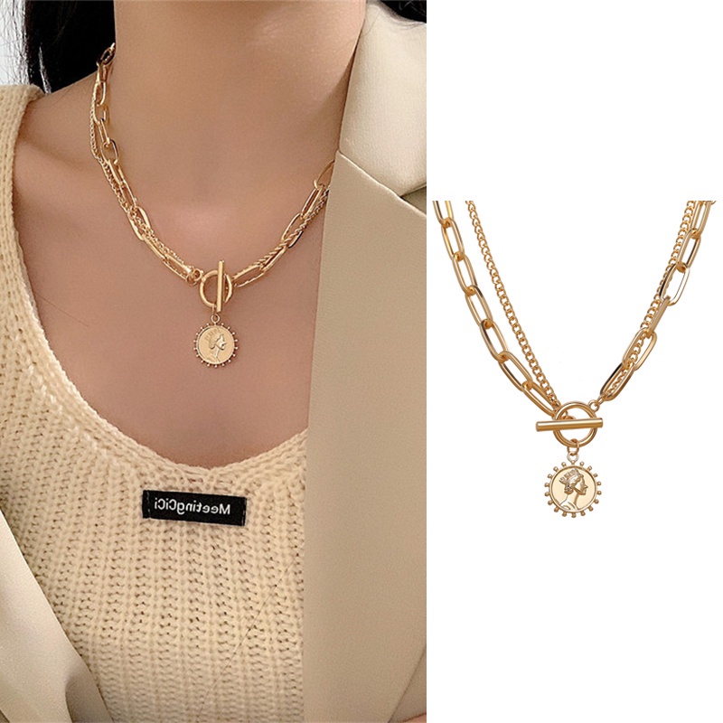 Kalung Choker Rantai Oval Gaya Punk Korea Hip Hop Retro Korean Style Chain Necklace