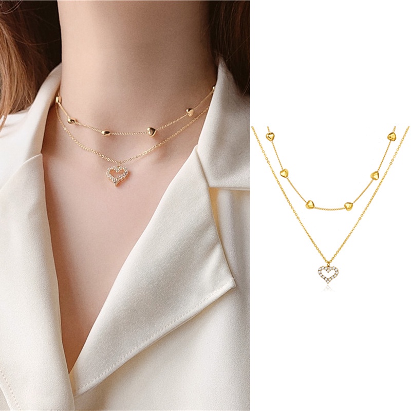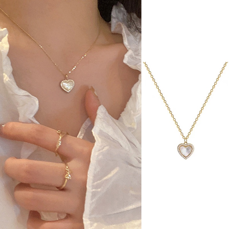 Korean Elegant Opal Necklace Crystal Heart Shape Lovely Chain Women Fashion Jewelry Accessories