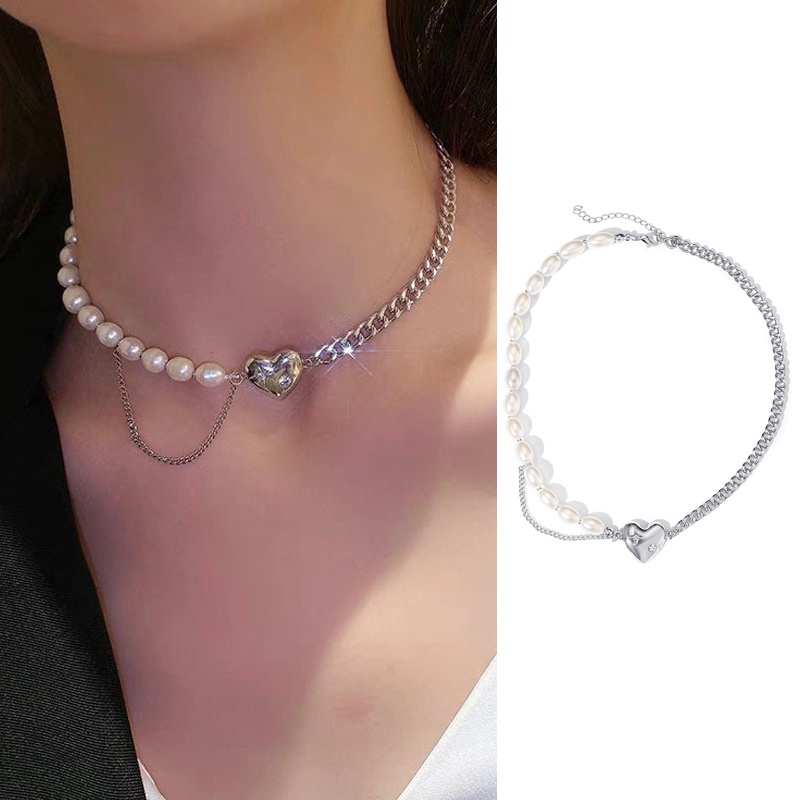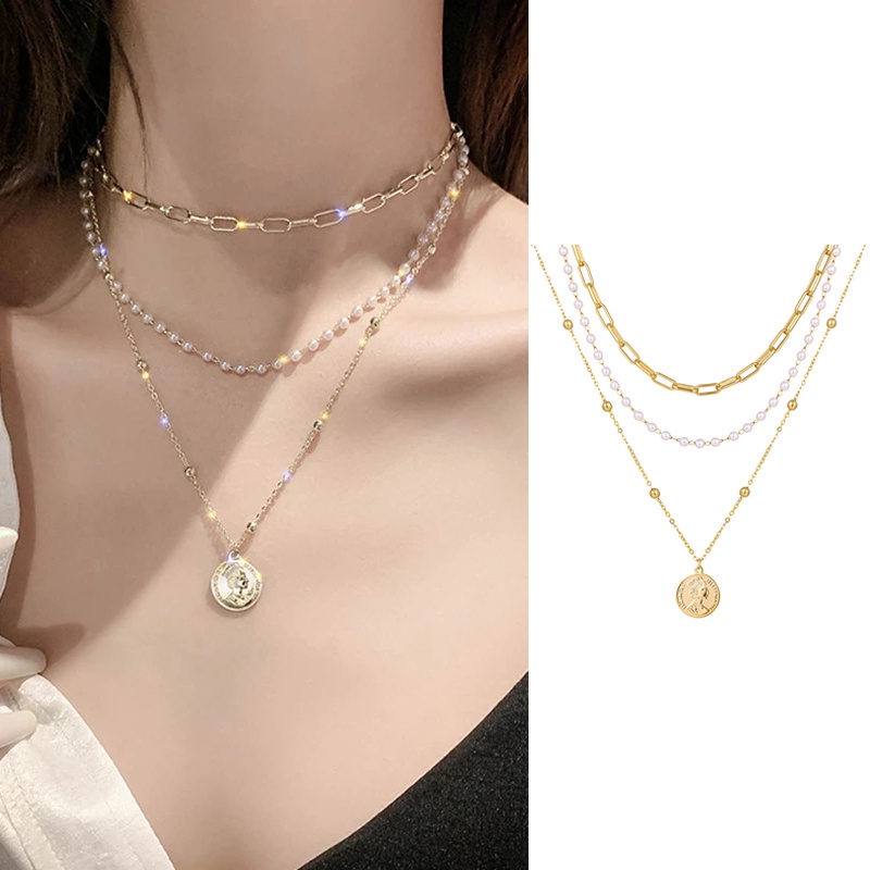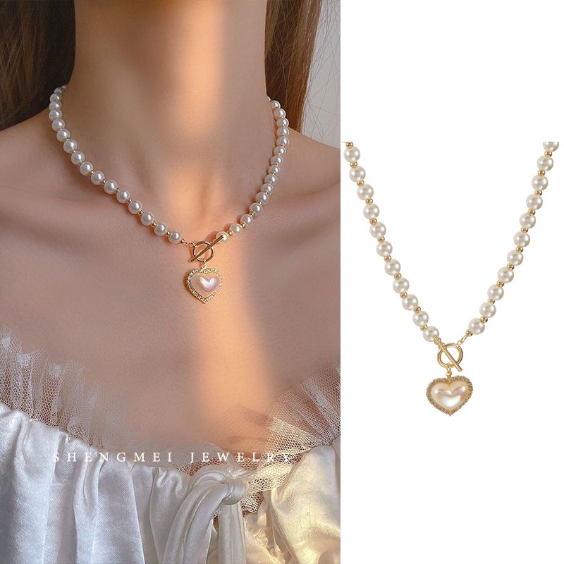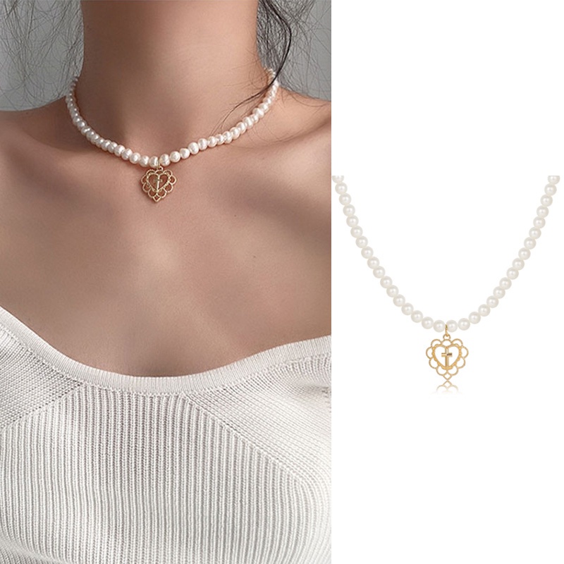Kekurangan - Kekurangan membeli 17KM Korean Fashion Pearl Rhinestone Beads Necklace Heart Shape Butterfly Portrait Pendant Chain Choker Women Accessories di Toko ini