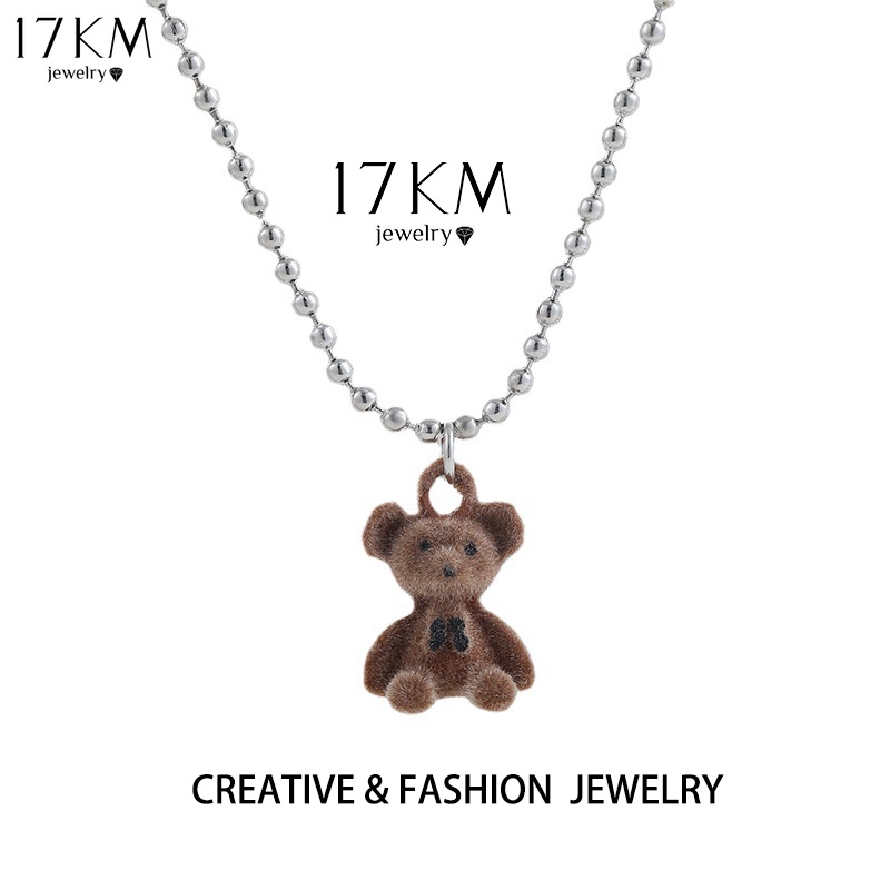 Kalung Choker Rantai Manik-Manik Bulat Liontin Beruang 17km Untuk Wanita