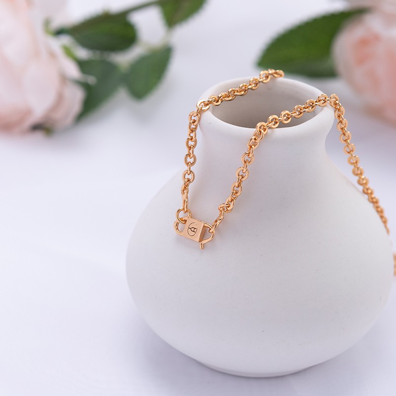 Korea Fashion Titanium Steel Kalung Rantai Klavikula Bulat Emas Gaya Retro