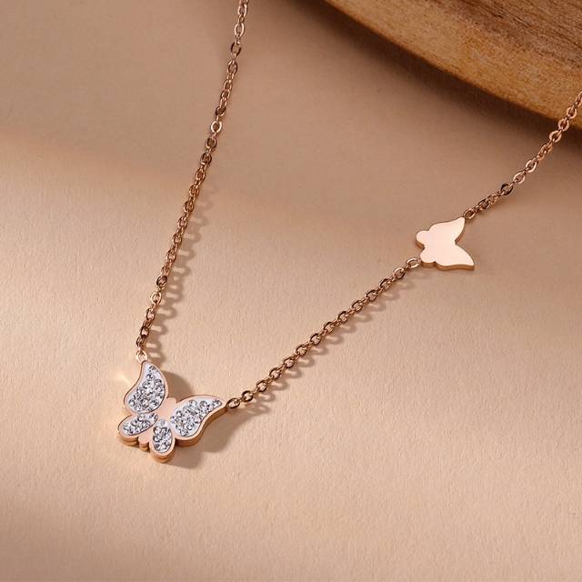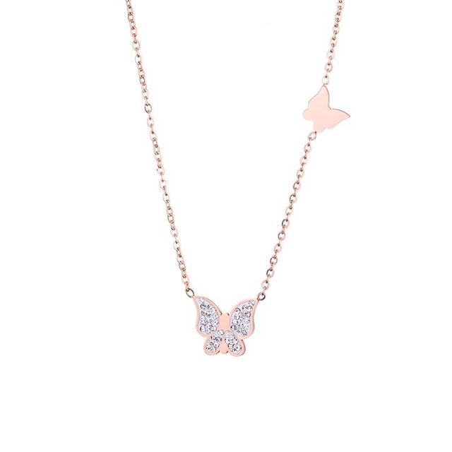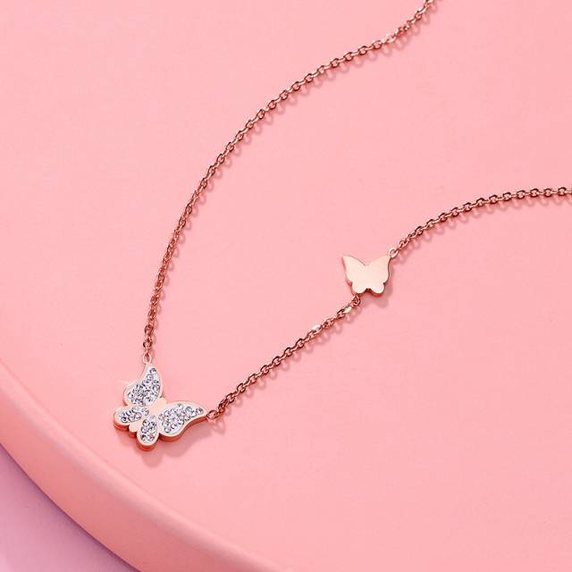 Harga 743# LS Kalung Wanita titanium lapis emas 18k model Kupu-kupu Satu rosegold
