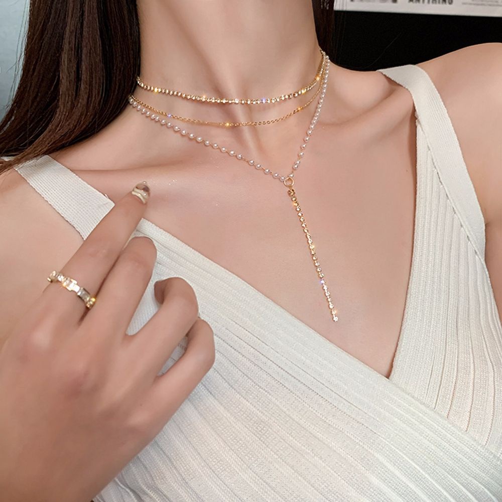 Kekurangan - Kekurangan membeli AHOUR Retro Diamond Necklace Exquisite Multi-layered Pearl Necklace Luxury Elegant Korean Jewelry Gift Alloy Simple Female Clavicle Chain/Multicolor di Toko ini