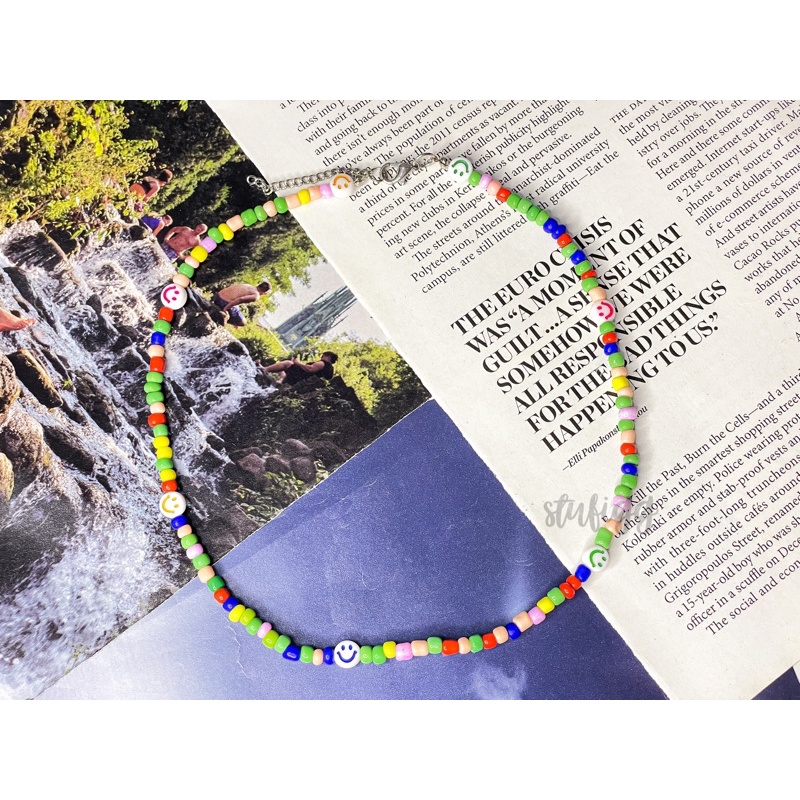 Kekurangan - Kekurangan membeli BISA COD Termurah Kalung Manik Beads Necklace Korean Kalung Mute Colorful Smile Kalung Couple Kalung Pria Wanita di Toko ini