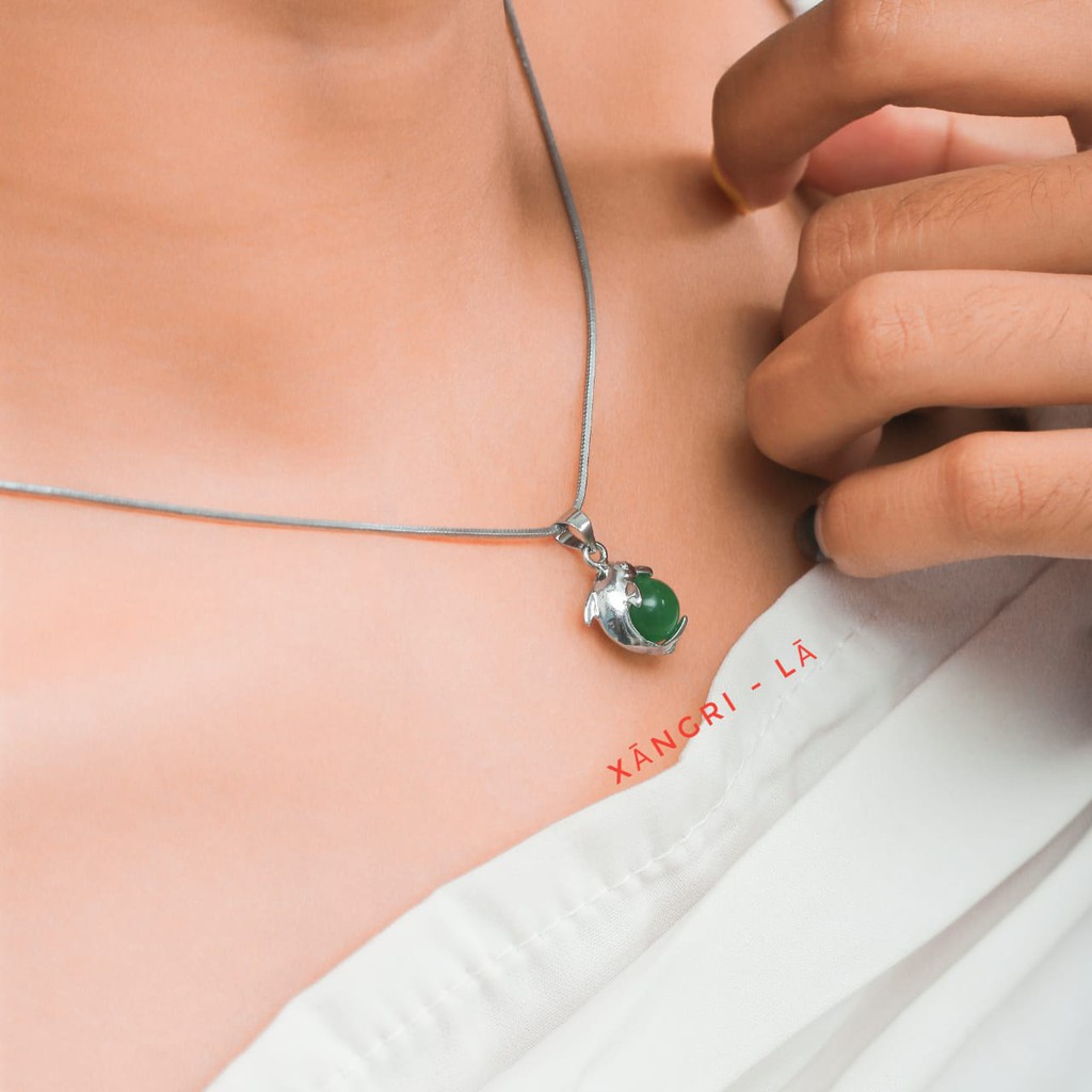 [Bayar Di Tempat] Kalung Wanita Titanium Silver Liontin Batu Giok Terbaru Anti Karat / Luntur