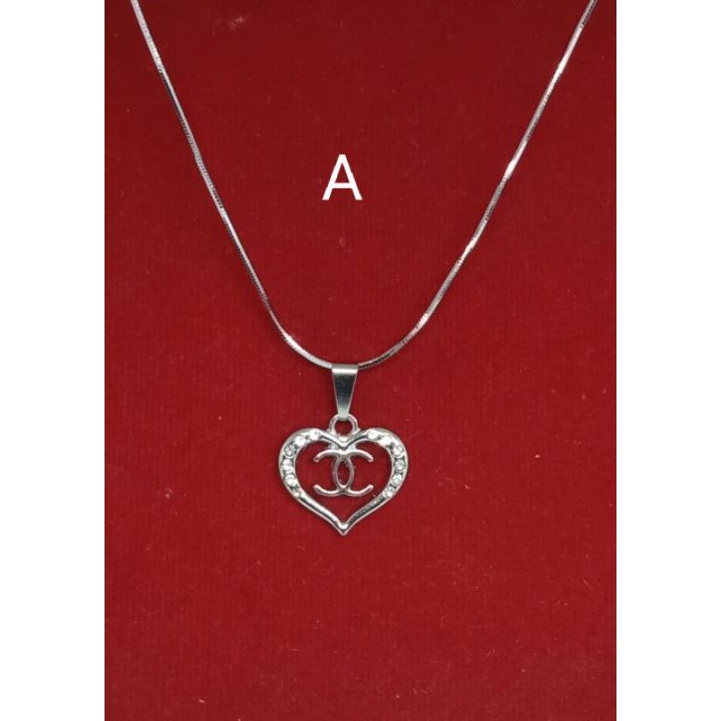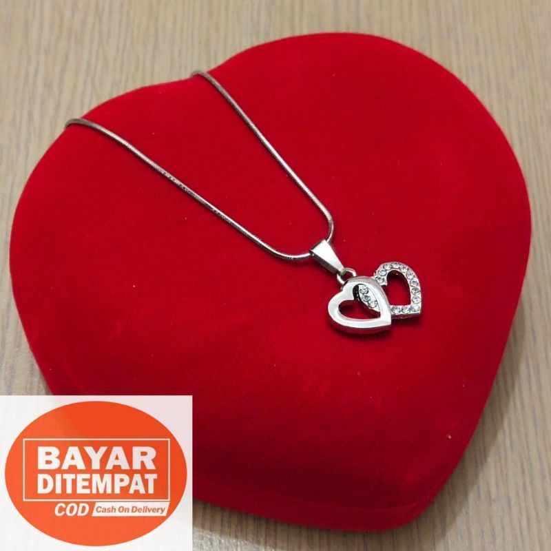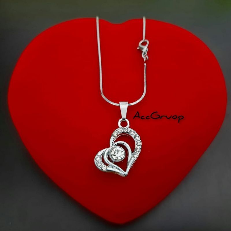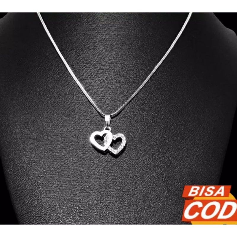 [Bayar Di Tempat] Kalung Wanita Titanium Silver Liontin Love Full Mata Anti Karat Selamanya