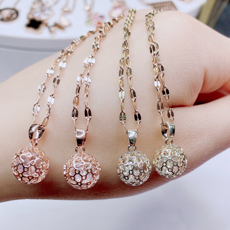 727# LS Kalung Wanita titanium lapis emas 18k model Bola Bersinar rosegold