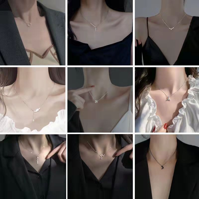 Fashion Kalung Wanita TITANIUM Itally Permata Satu Zircon Rantai Logam Anti Karat