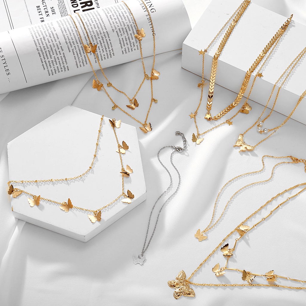 Kelebihan - Kelebihan membeli Fashion Retro Personality Butterfly Pendant Lock Multilayer Chain Choker Korean Bohemian Gold Necklace Jewelry Accessories Gift di Toko ini