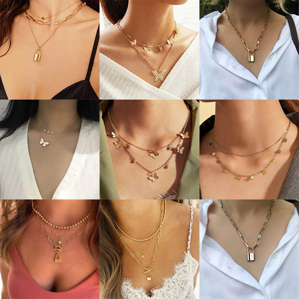 Kekurangan - Kekurangan membeli Fashion Retro Personality Butterfly Pendant Lock Multilayer Chain Choker Korean Bohemian Gold Necklace Jewelry Accessories Gift di Toko ini