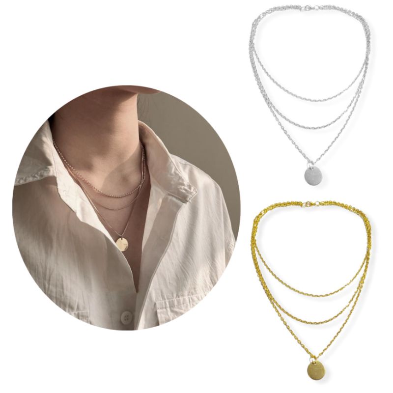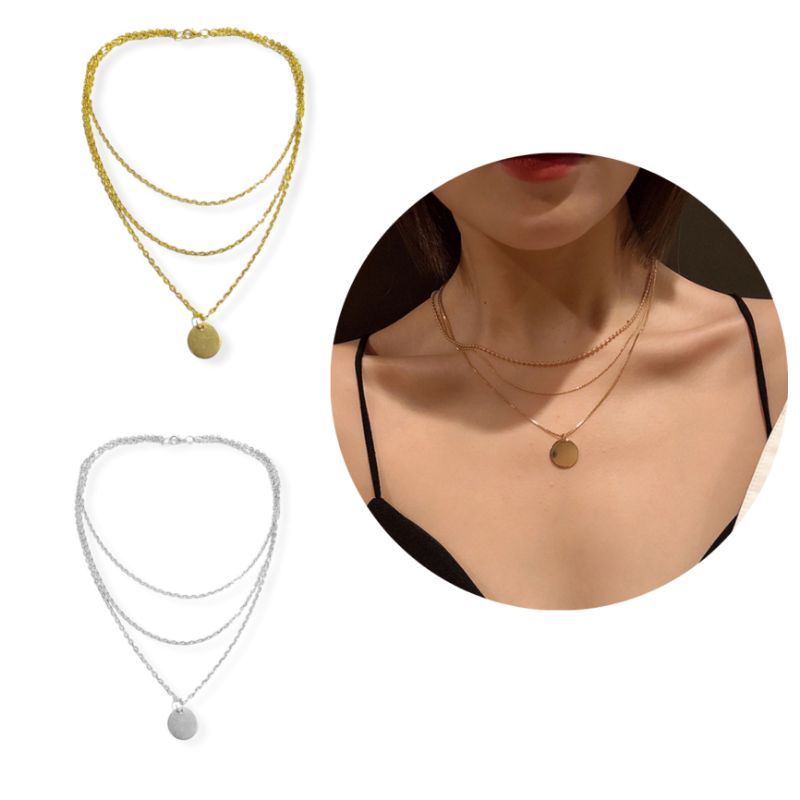 Alasan kenapa harus beli Giselle Triple Layer Plat Coin Korean Necklace Kalung Korea Tiga Lapis Rantai Kepribadian sekarang