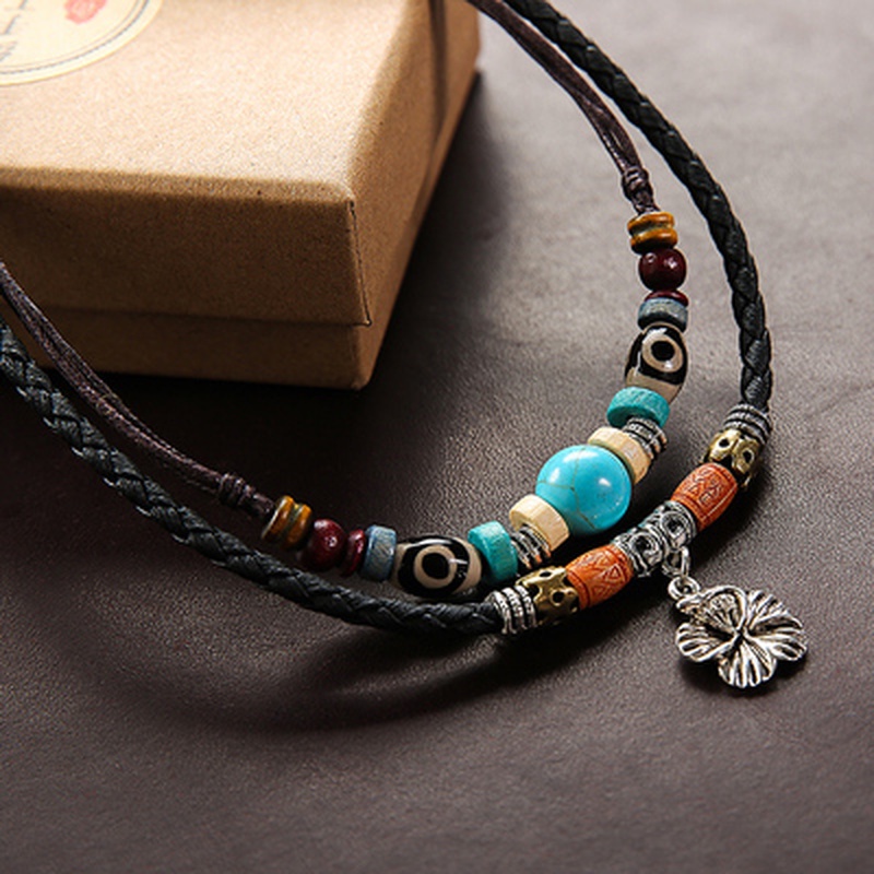 Harga Kalung Choker Tali Kulit Liontin Manik-Manik Koin Bahan Alloy Gaya Retro Etnik Vintage Untuk Unisex