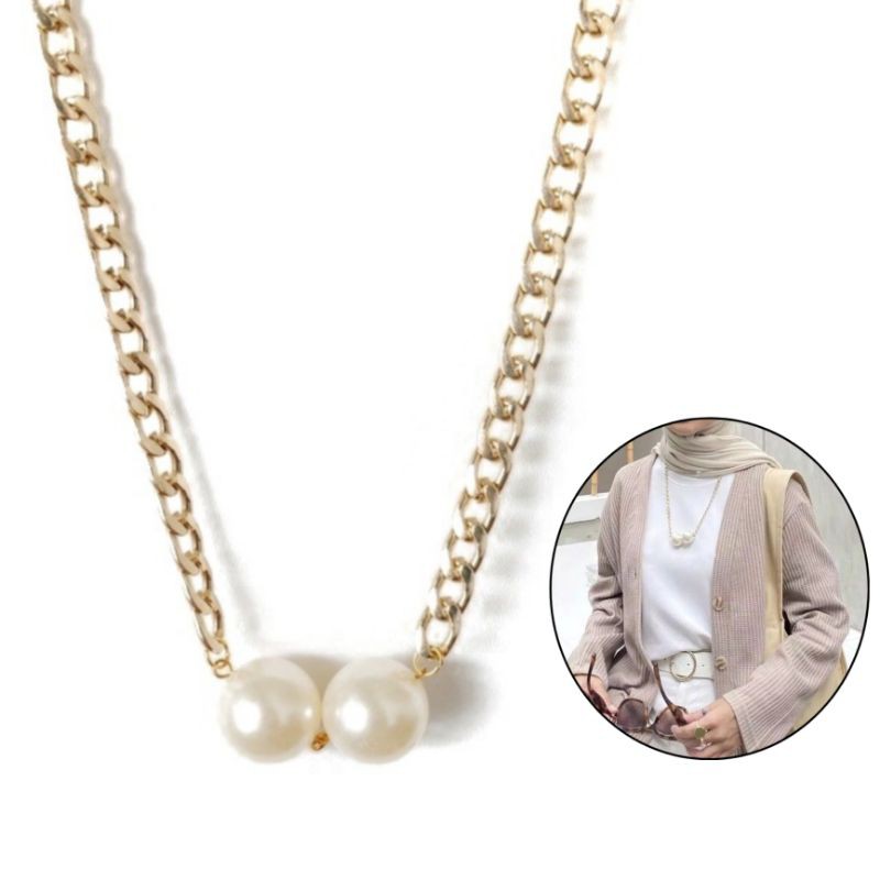 Harga Kalung Panjang Korea Dua Mutiara Jumbo Kalung Hijab Pearl Korean Necklace