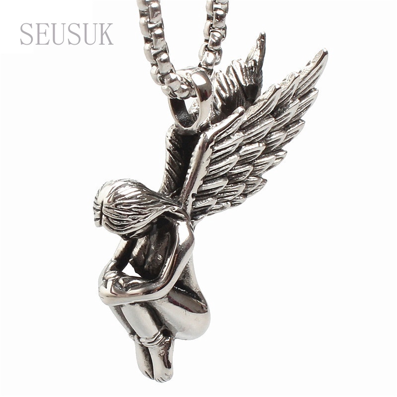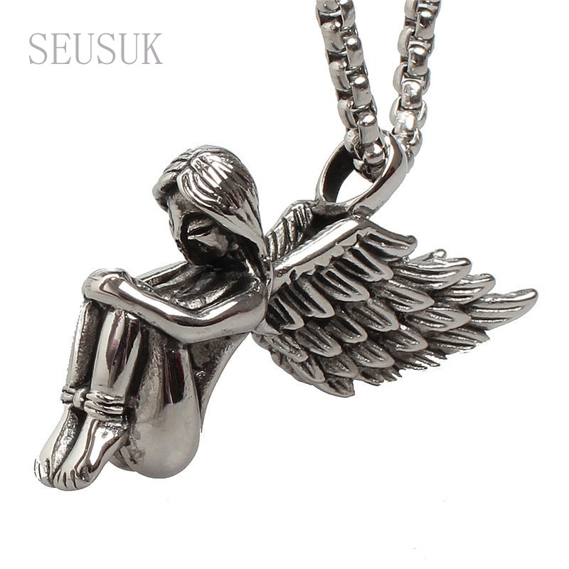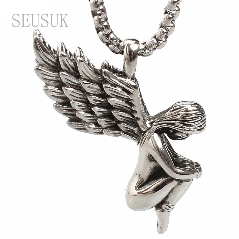 Kekurangan - Kekurangan membeli Kalung Rantai Liontin Sayap Malaikat Vintage Punk Rock Gothic Bahan Titanium Steel 316L untuk Pria di Toko ini