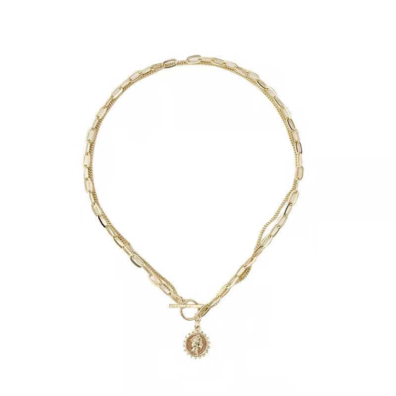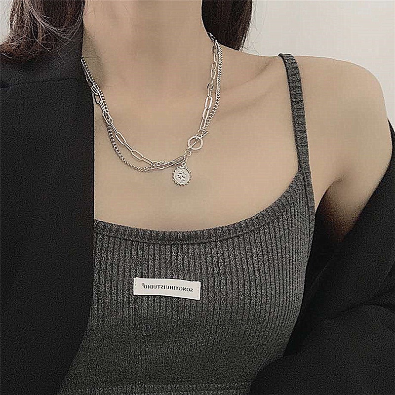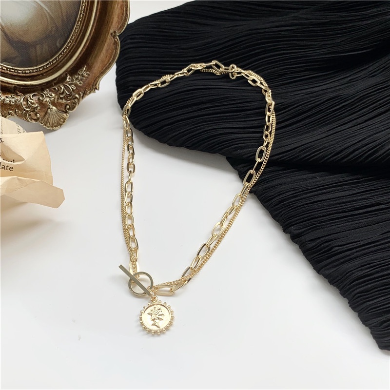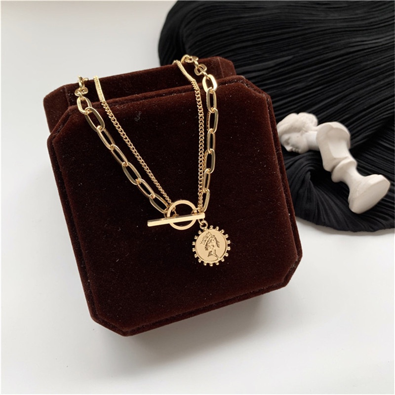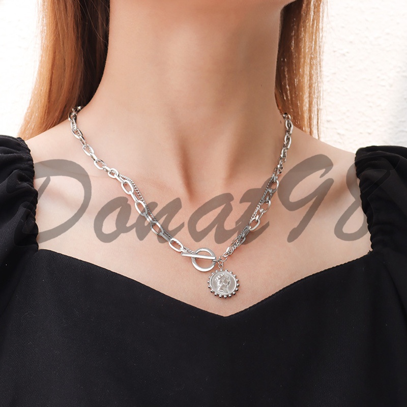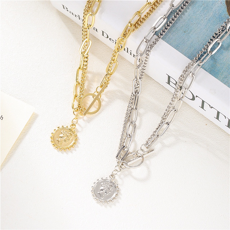 Harga Kalung Rantai Logam Ganda Wanita Dengan Liontin Koin Kepala Cantik Korean Import