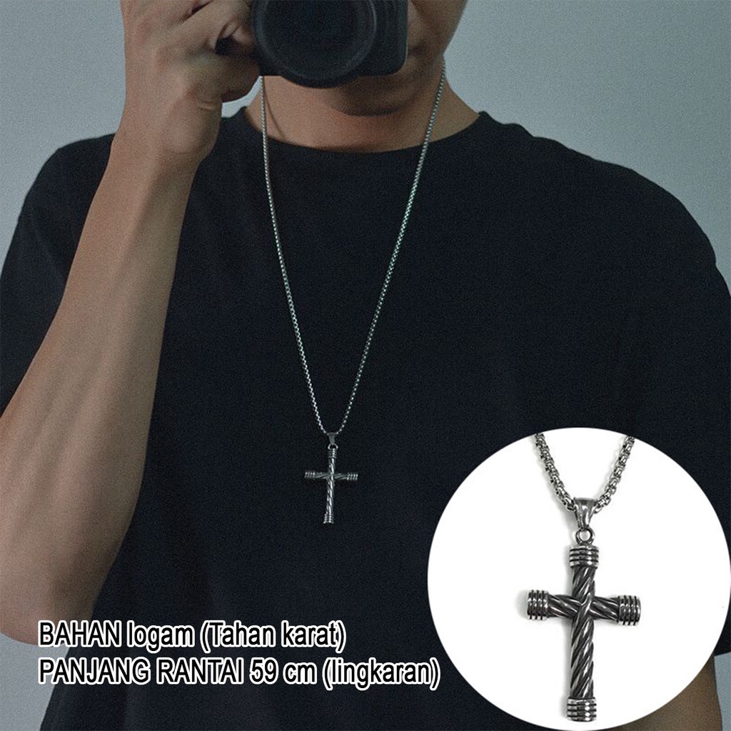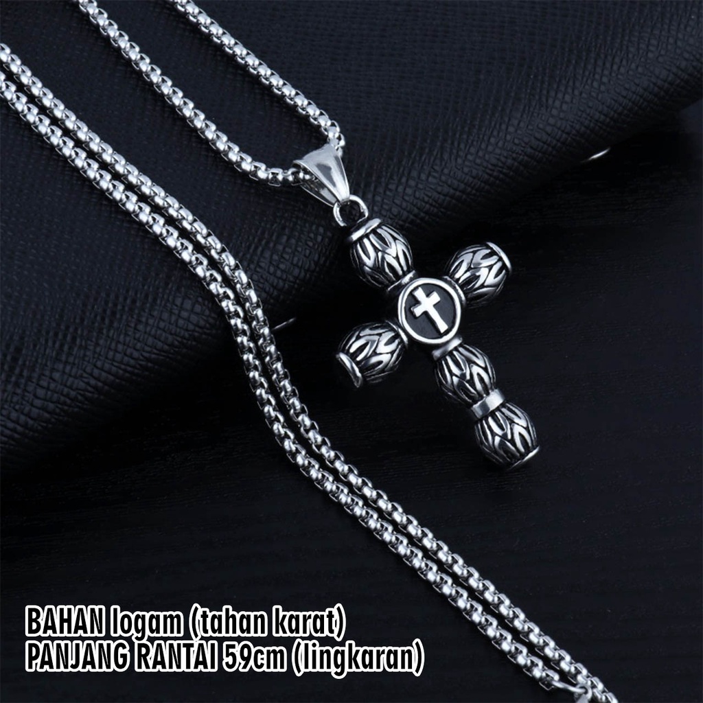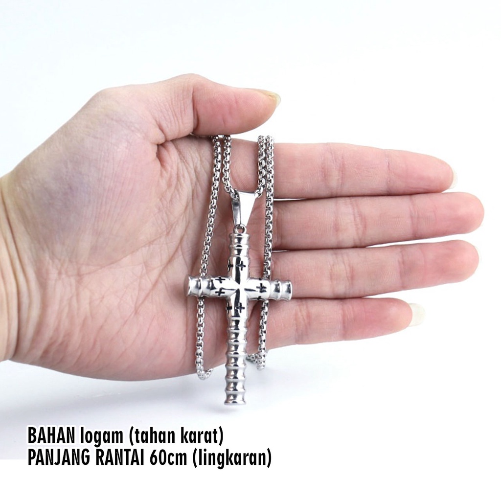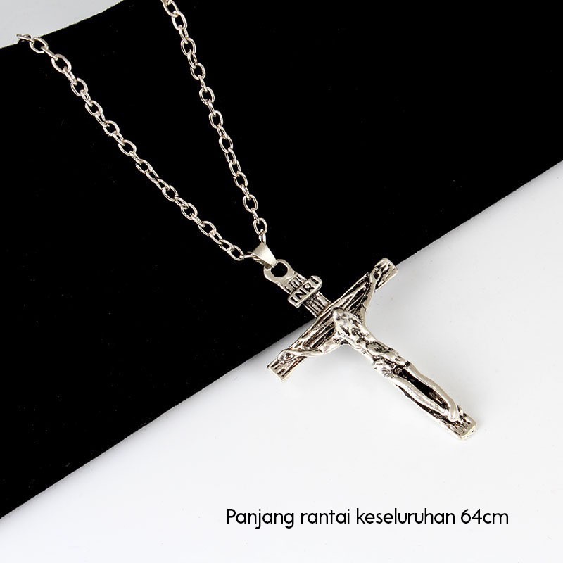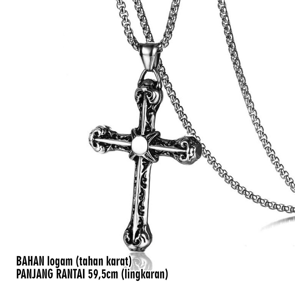 Kalung salib pria wanita couple liontin style keren ukuran besar medium bahan rantai alloy warna silver putih emas hitam polos bagus