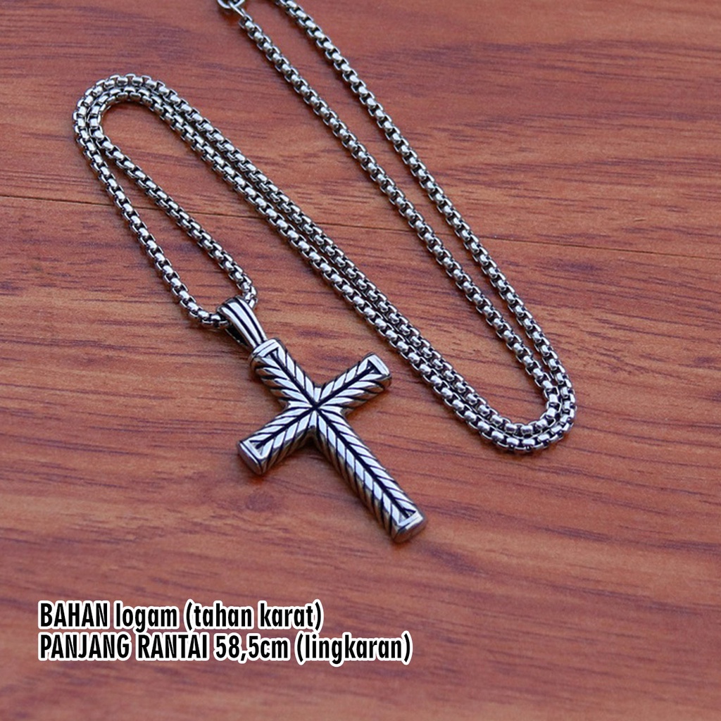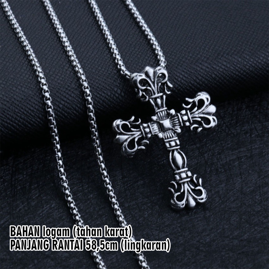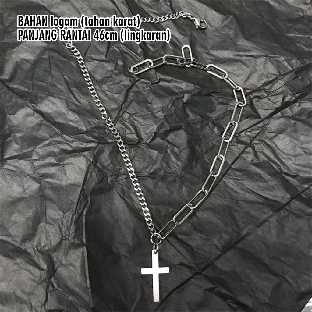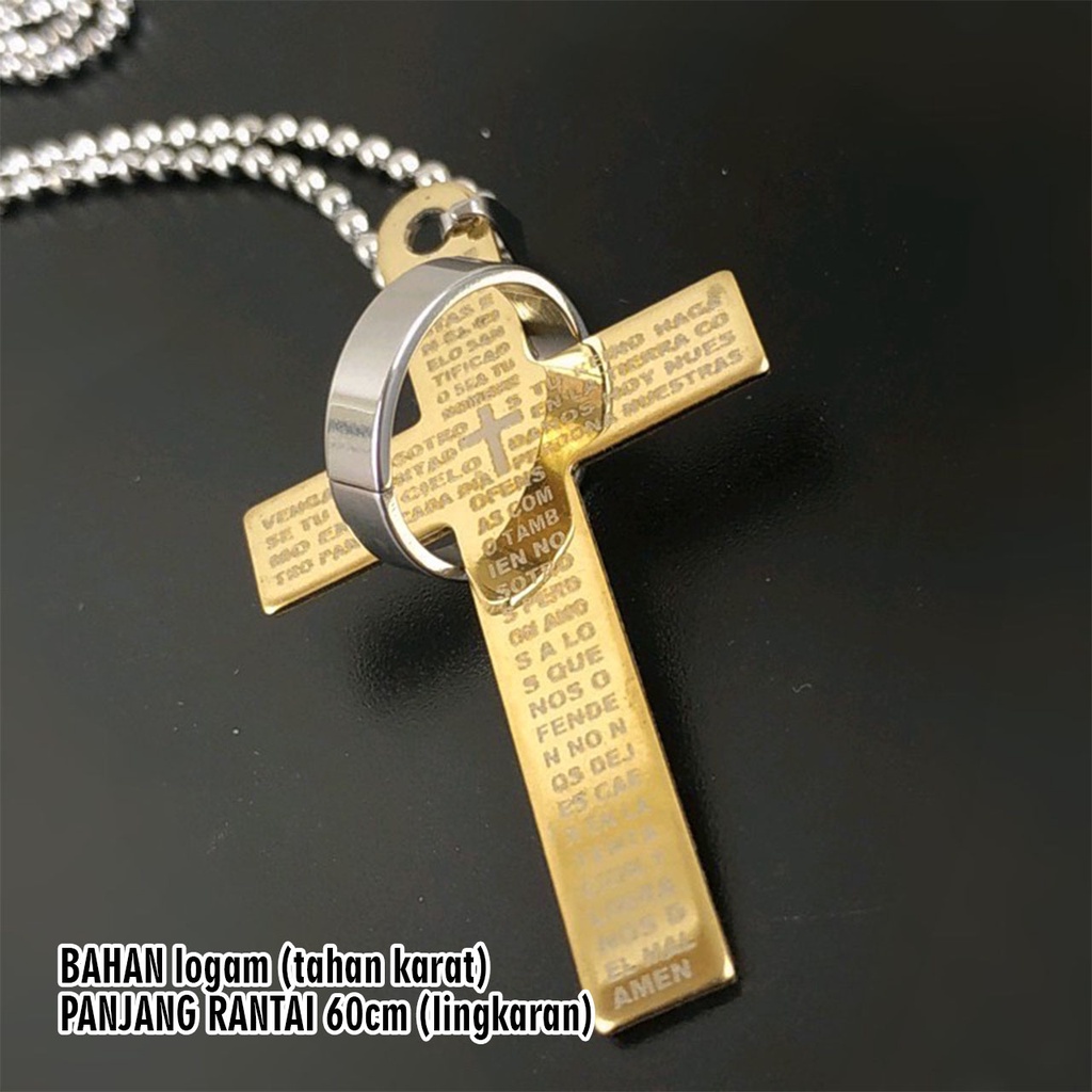 Kalung salib pria wanita couple liontin style keren ukuran besar medium bahan rantai alloy warna silver putih emas hitam polos bagus