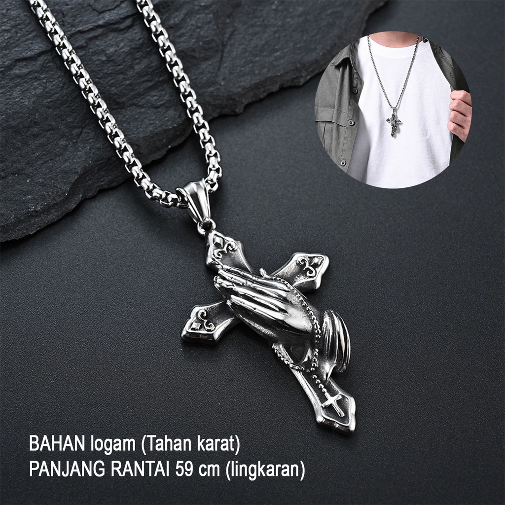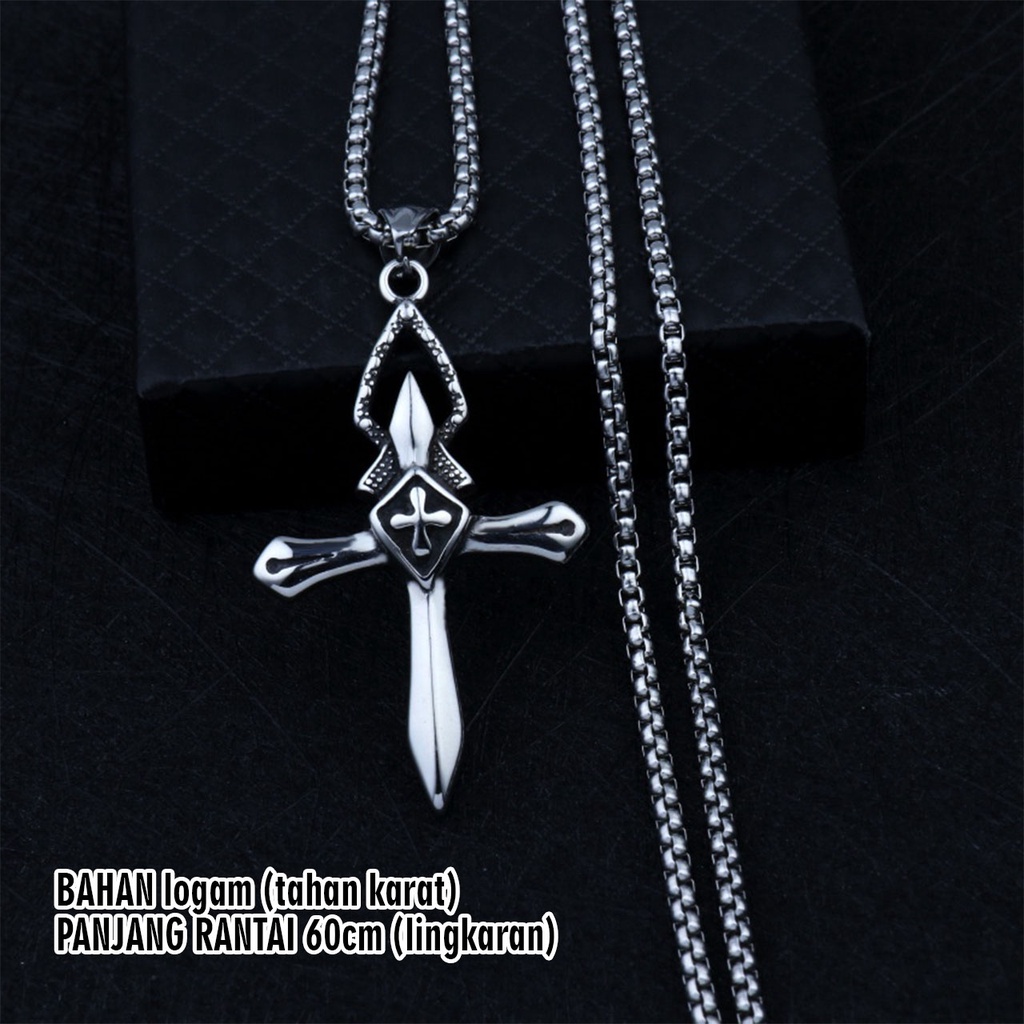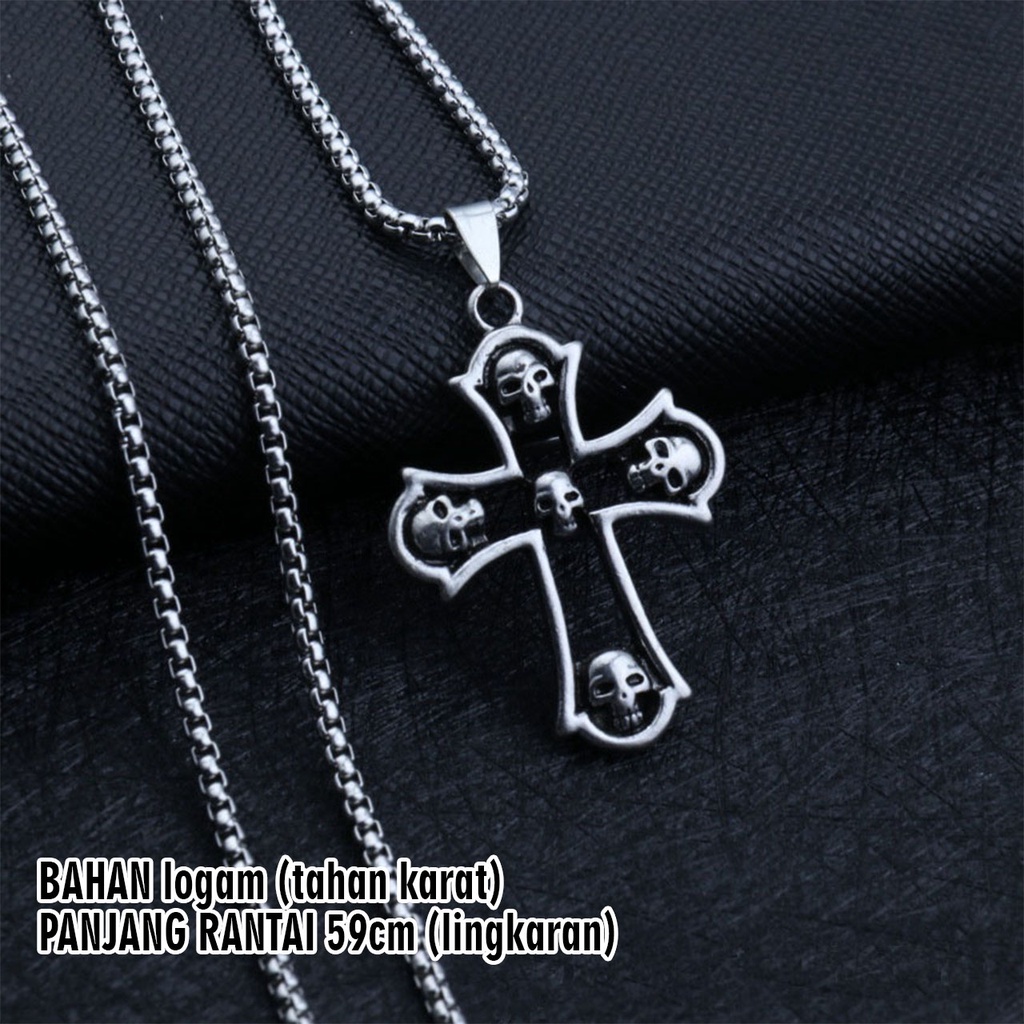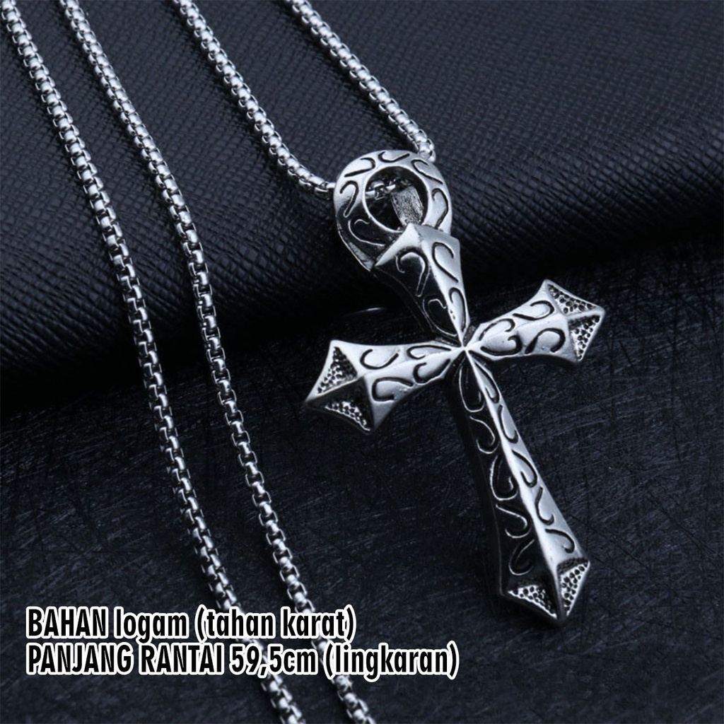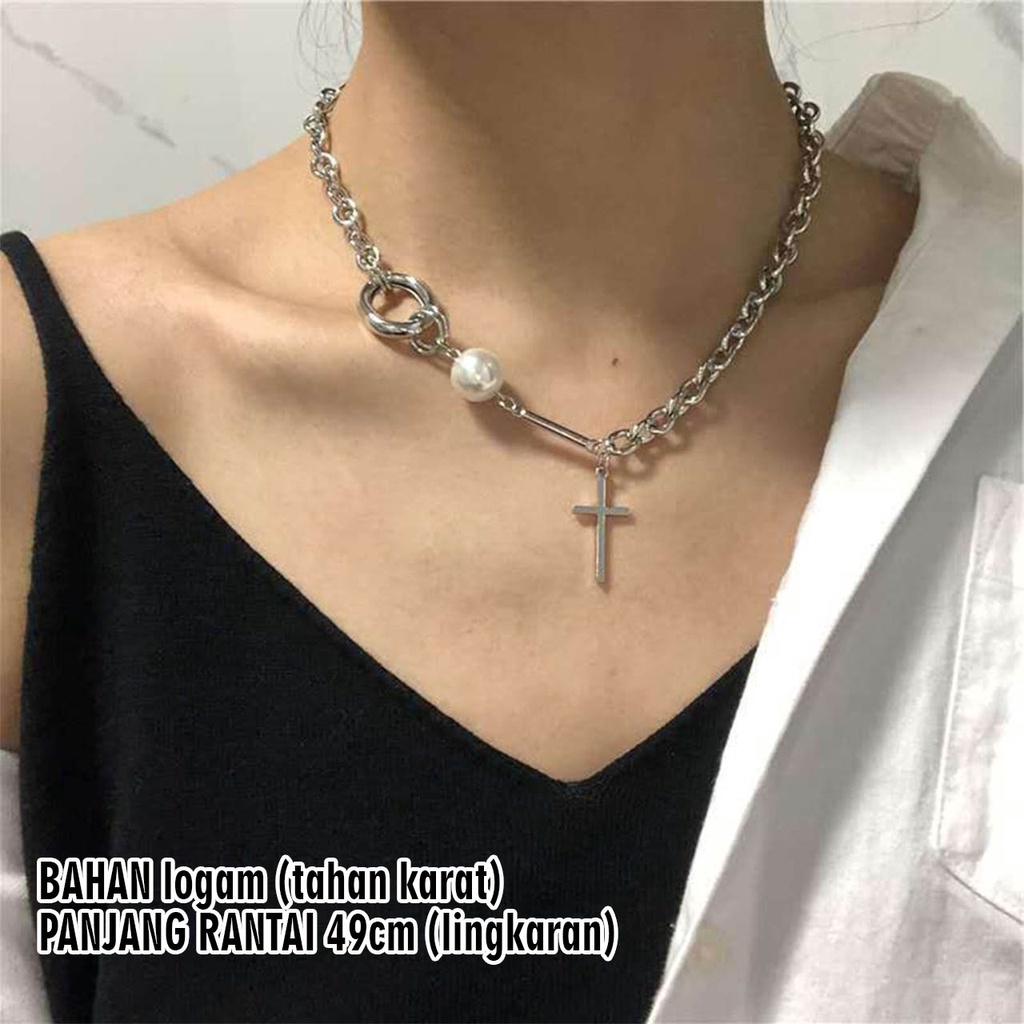 Kalung salib pria wanita couple liontin style keren ukuran besar medium bahan rantai alloy warna silver putih emas hitam polos bagus