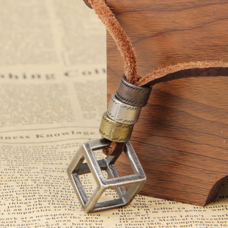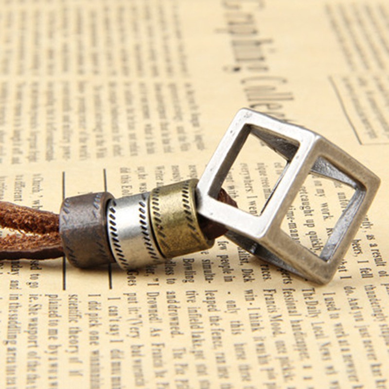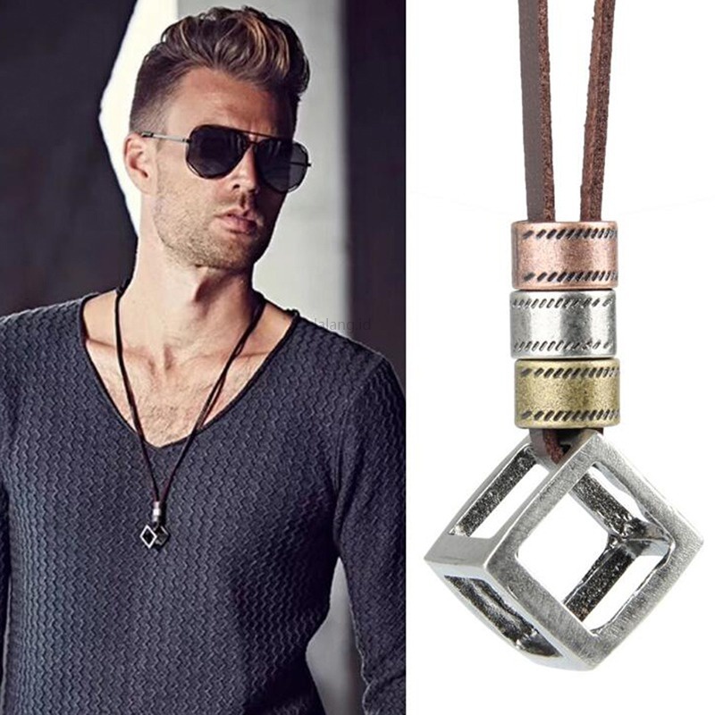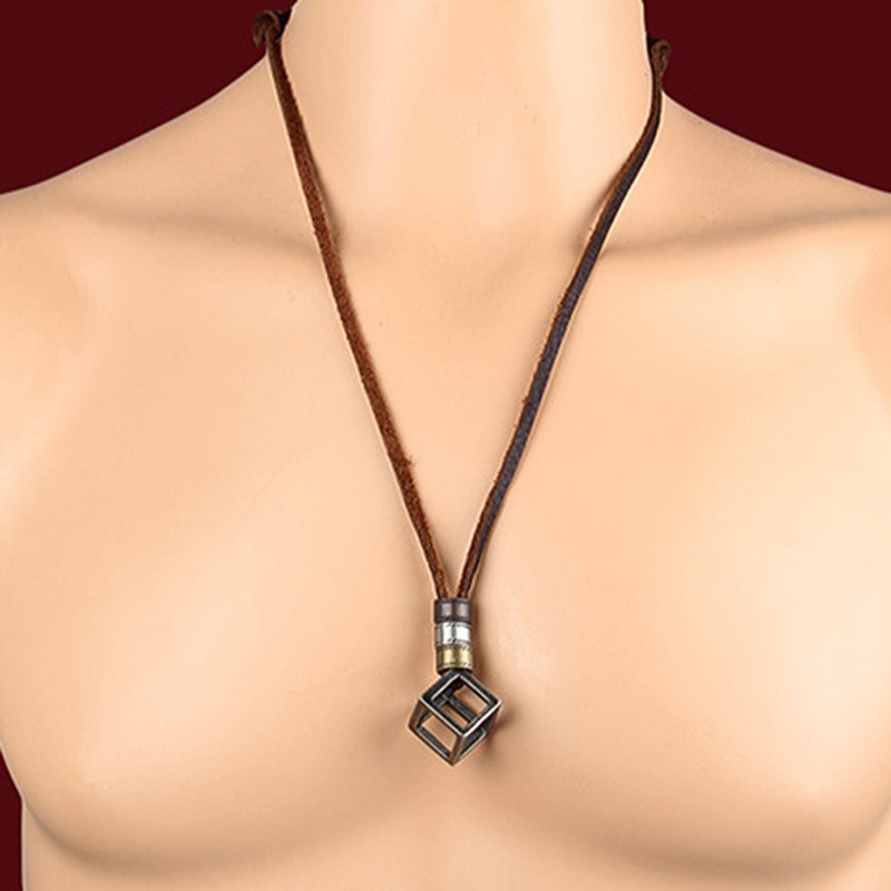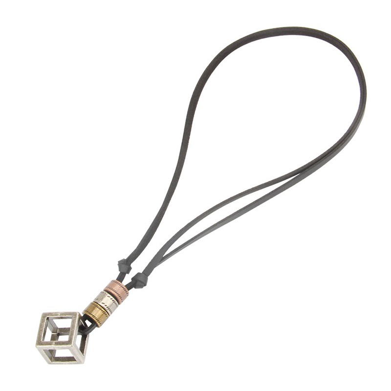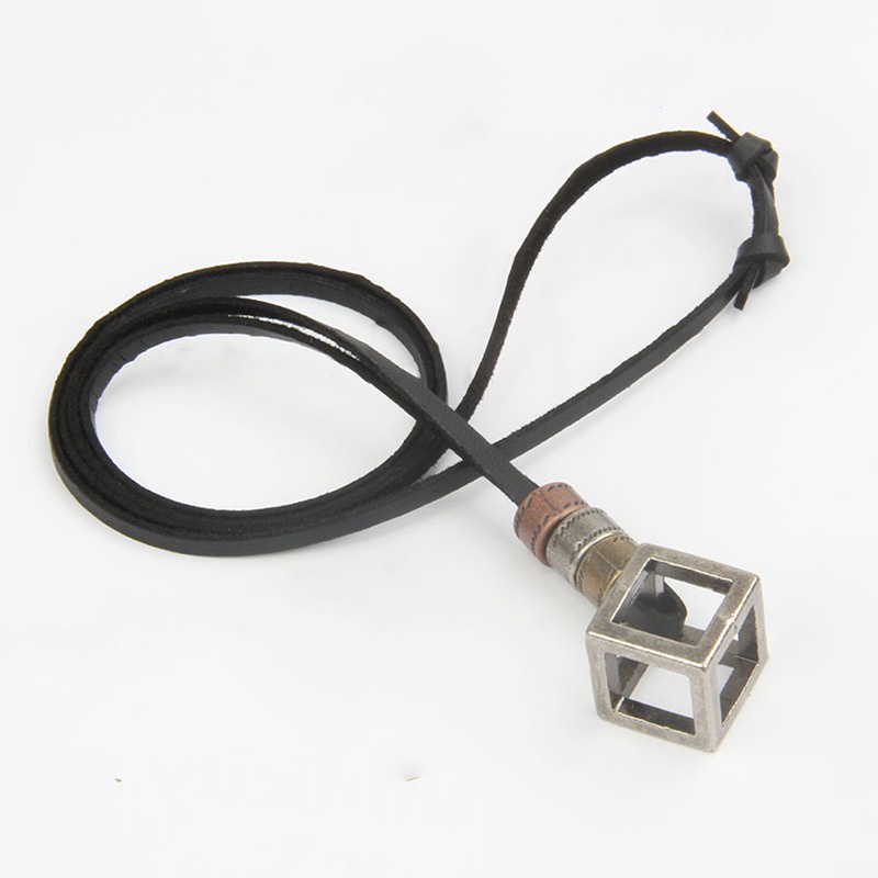 Harga Kalung Tali Kulit Bentuk Kotak Bahan Alloy Untuk Pria