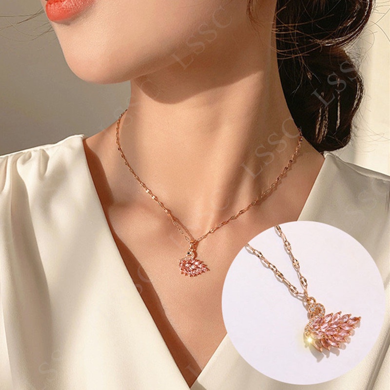 Harga Kalung Titanium Swan Angsa Berlian Kristal Emas 18k Wanita Anti Karat Perhiasan Korea
