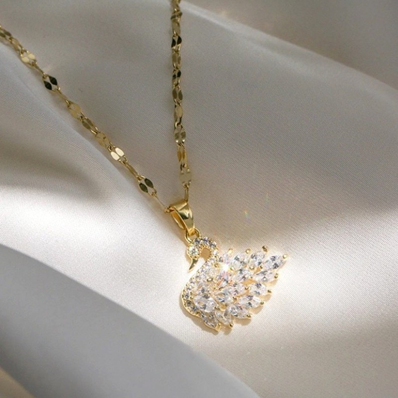 Kelebihan - Kelebihan membeli Kalung Titanium Swan Angsa Berlian Kristal Emas 18k Wanita Anti Karat Perhiasan Korea di Toko ini