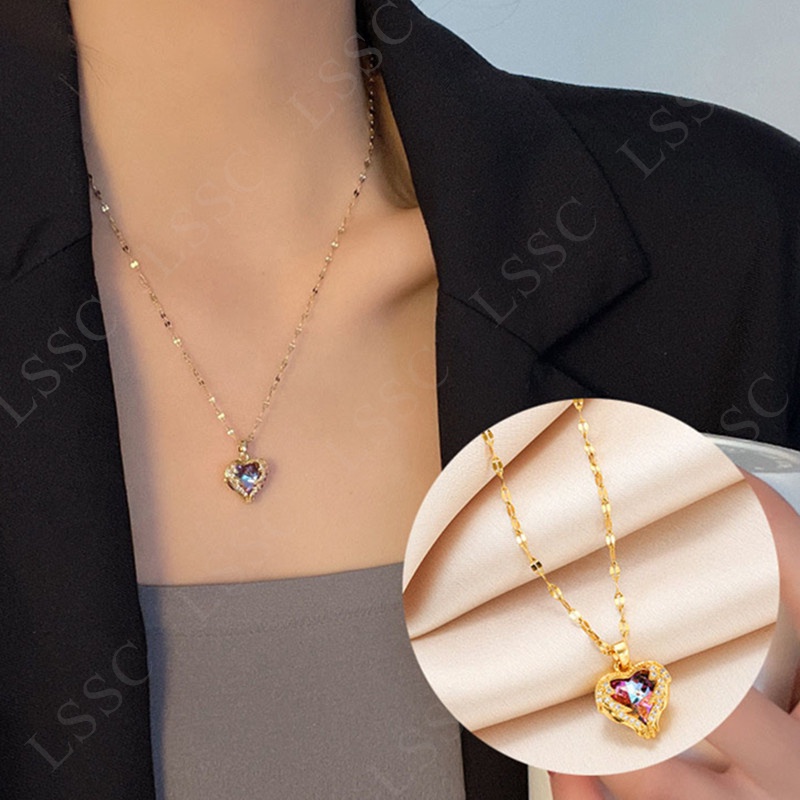 Emas Titanium kalung wanita Korea Hati ke hati liontin choker