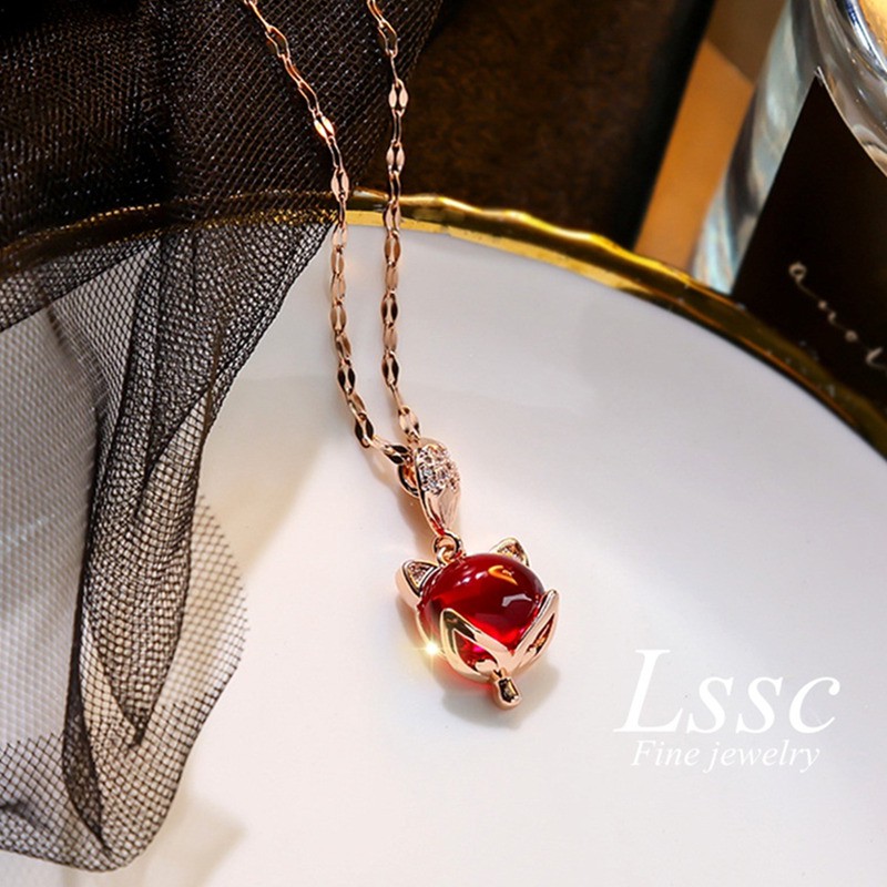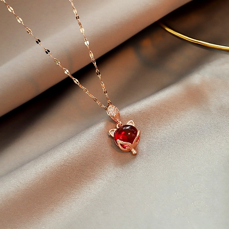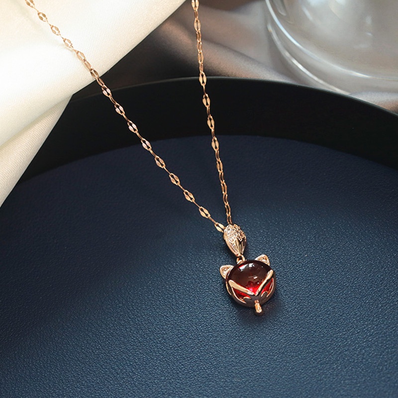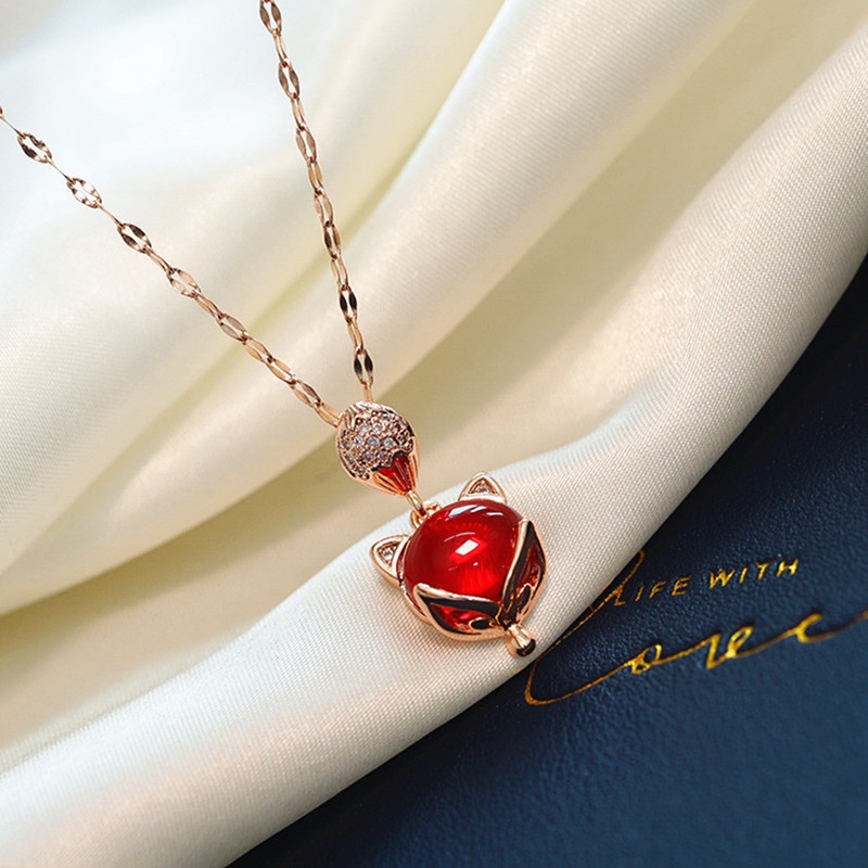 Harga Kalung Titanium Wanita Rubah Kristal Beruntung Korea Lapis 18k Emas Berlian Perhiasan
