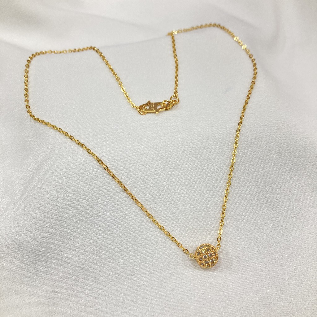 Harga Kalung Wanita Lapis Emas Bola Permata Aksesoris Fashion KLE41