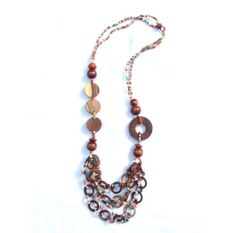 Harga Kalung wanita manik-manik kayu etnik handmade