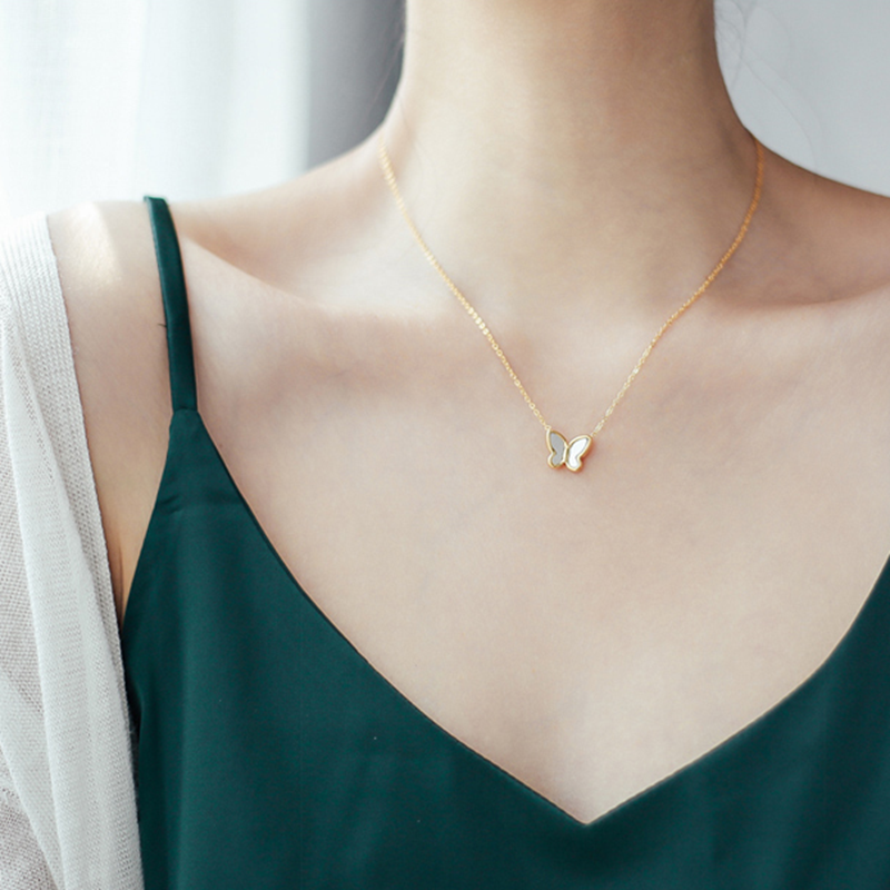 Harga Kalung Wanita Titanium Emas 18k Bentuk Kupu-Kupu Bahan Titanium Steel Untuk Wanita
