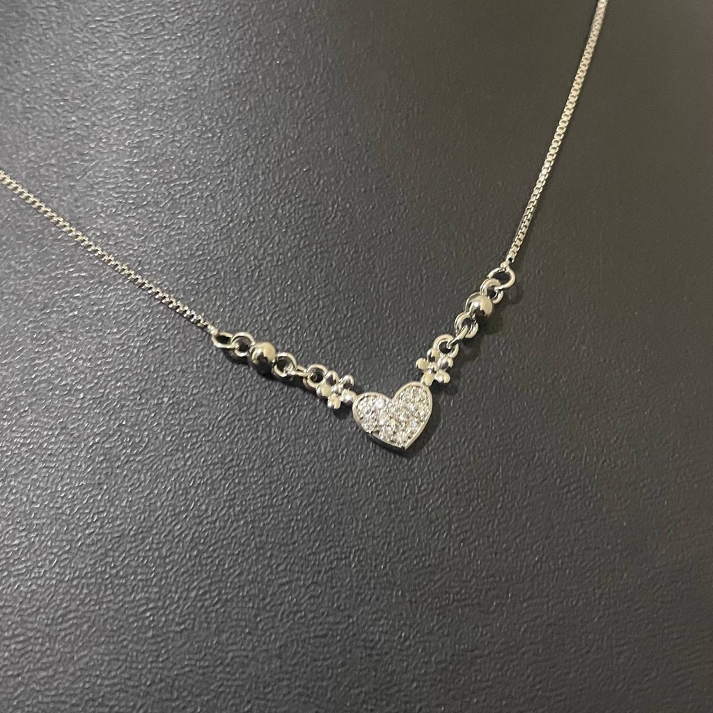[Bayar Di Tempat] Kalung Wanita Titanium Silver Liontin Love Full Mata Anti Karat Selamanya