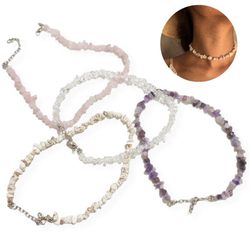 Jeannete Quartz Cracked Stone Beads Necklace Kalung Batu Kristal Crystal Choker Seastone Natural Batu Alam