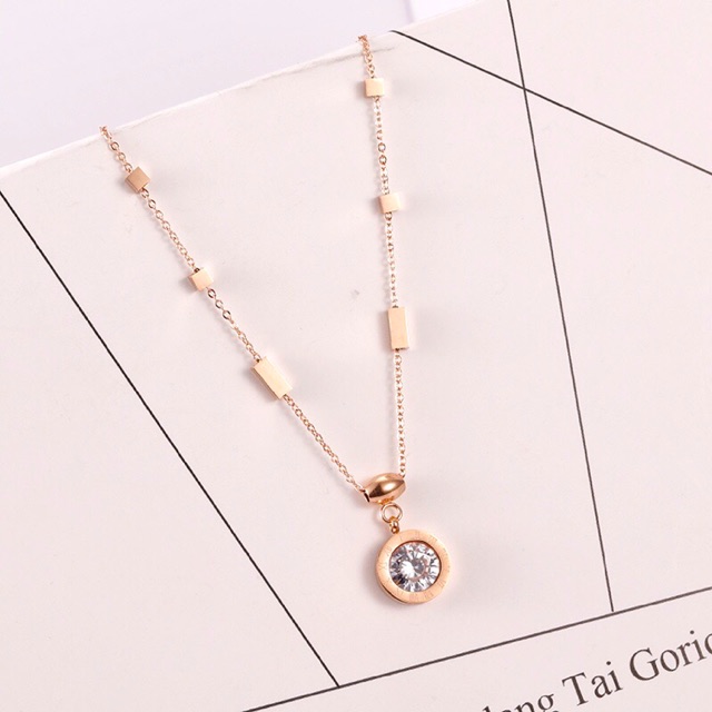283# LS Kalung Wanita titanium lapis emas 18k model liontin Permata Bulat rosegold