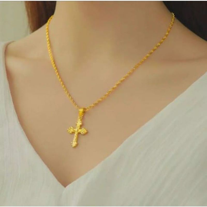 KALUNG MELINTIR TITANIUM LIONTIN SALIB WARNA EMAS ASLI 24K TIDAK LUNTUR DAN ANTI KARAT