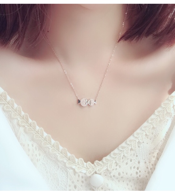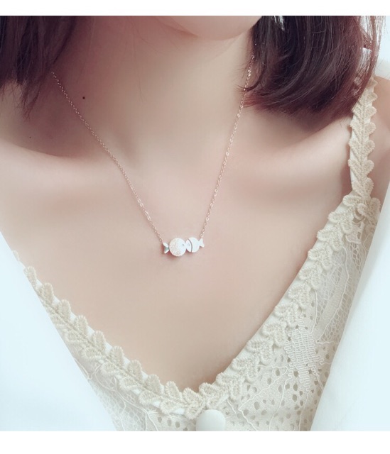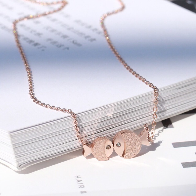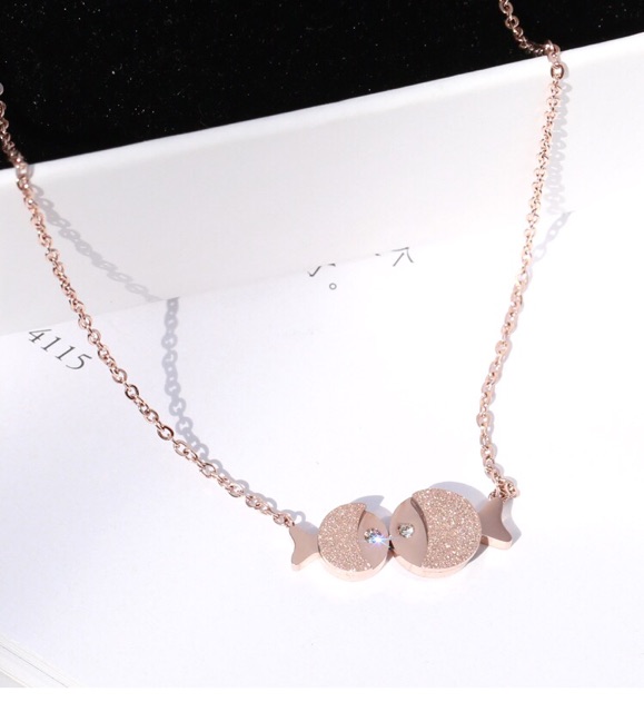 Harga 261# LS Kalung Wanita titanium lapis emas 18k model Hewan ikan Berpasangan rosegold