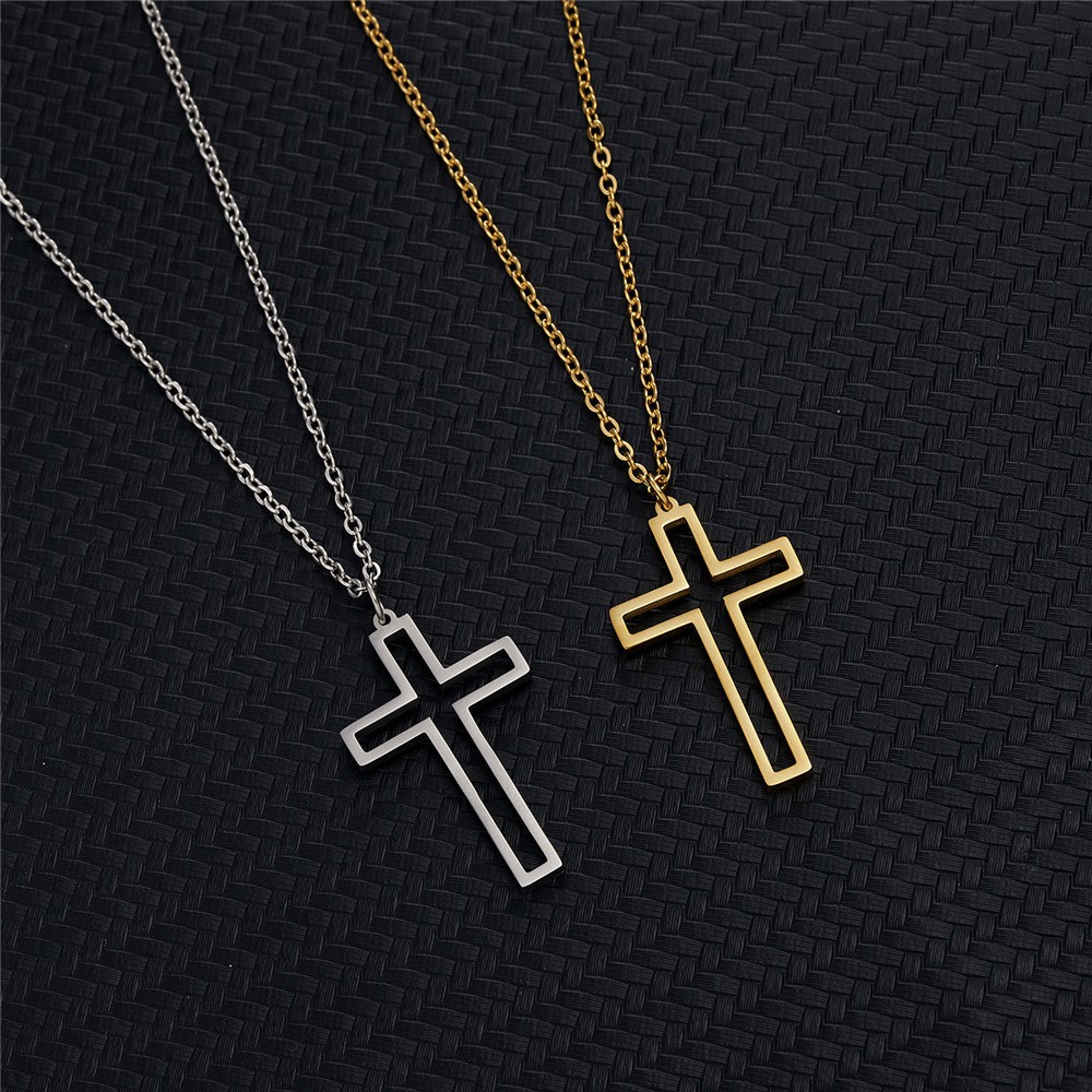 Kalung Salib Baja Titanium | Wanita Gadis Simbol Kristen Liontin Perhiasan Leher Stainless Steel
