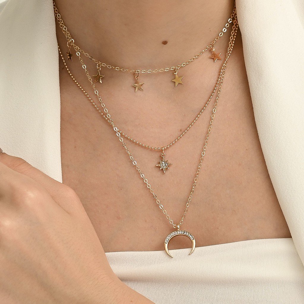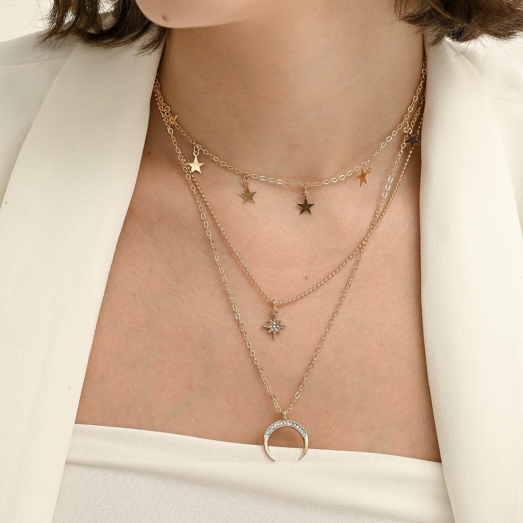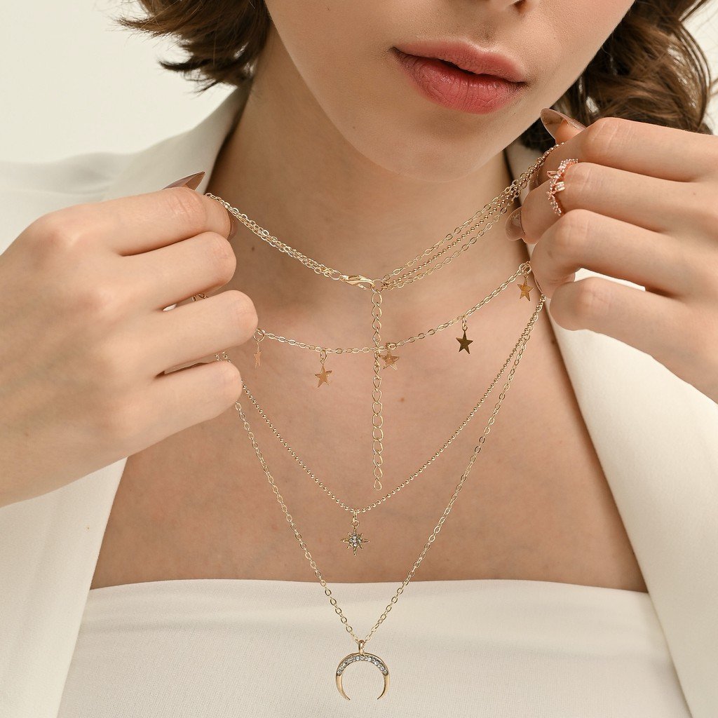 Harga BYSTESI Diana Necklace (Star Crescent Moon) | Kalung Wanita Korean Layer