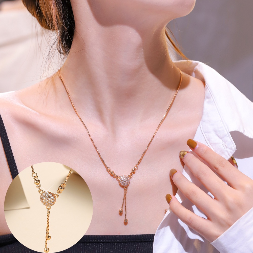 Y014 [COD✔] Kalung Wanita Titanium Anti Karat Berlian Liontin Klavikula Rantai Berlian Aksesoris Fashion Kalung Perhiasan Emas
