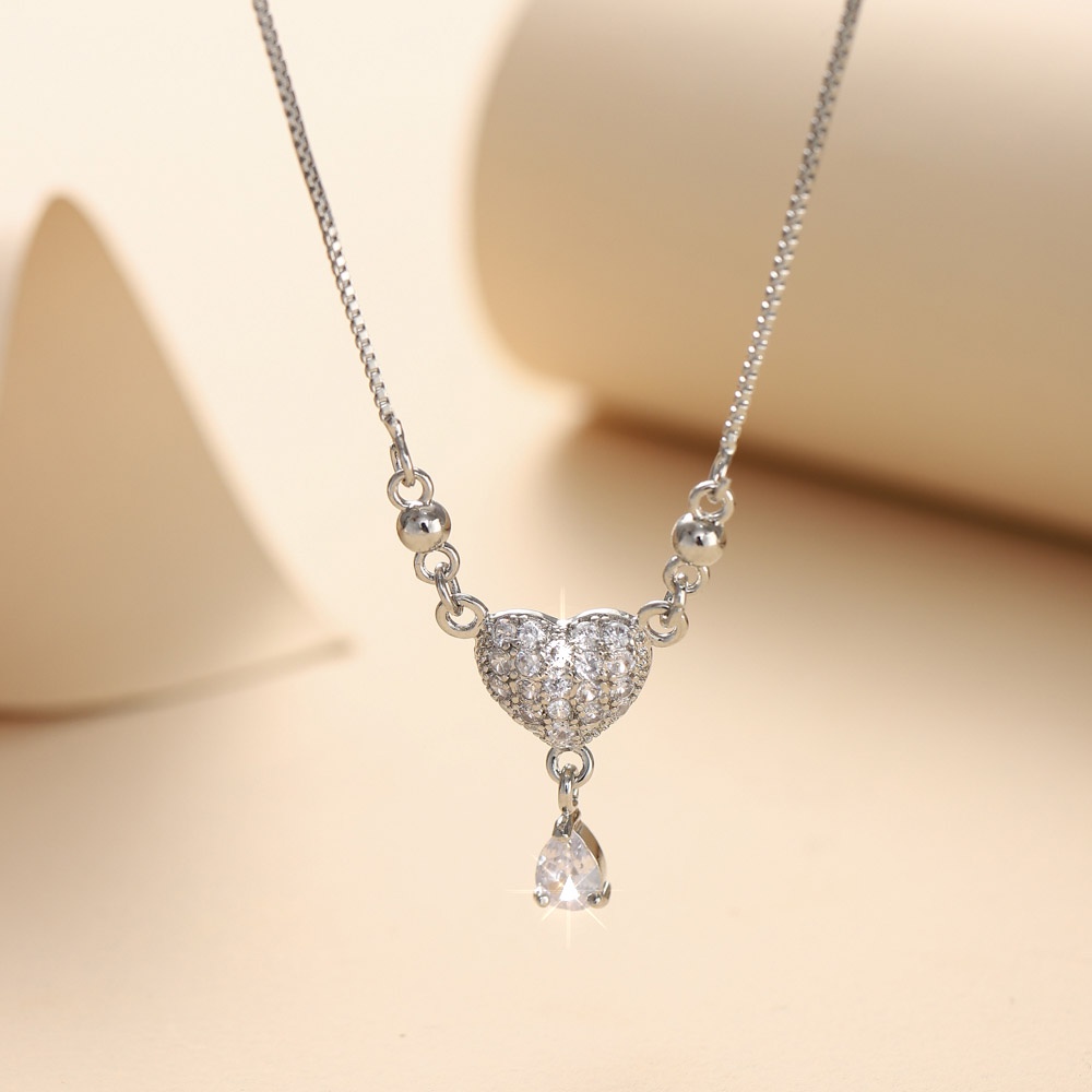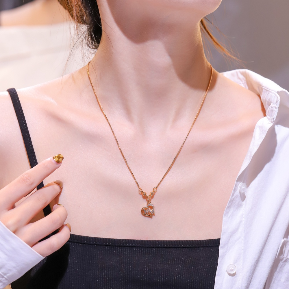 Kekurangan - Kekurangan membeli ✨ ✅COD Kalung Wanita Titanium Anti Karat Hati Liontin Berlian Klavikula Rantai Aksesoris Fashion Kalung Perhiasan Emas D031 di Toko ini