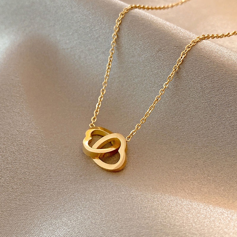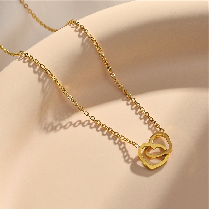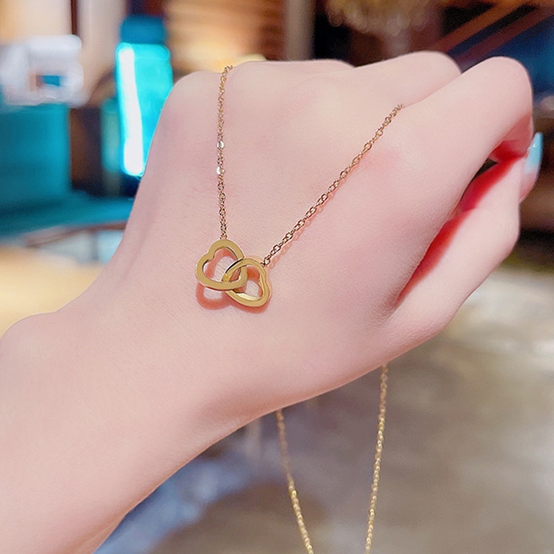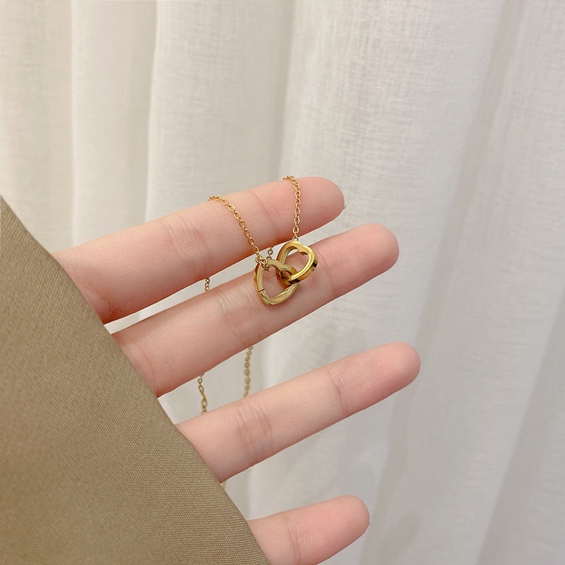 Alasan kenapa harus beli Emas Titanium kalung wanita Korea Hati ke hati liontin choker sekarang