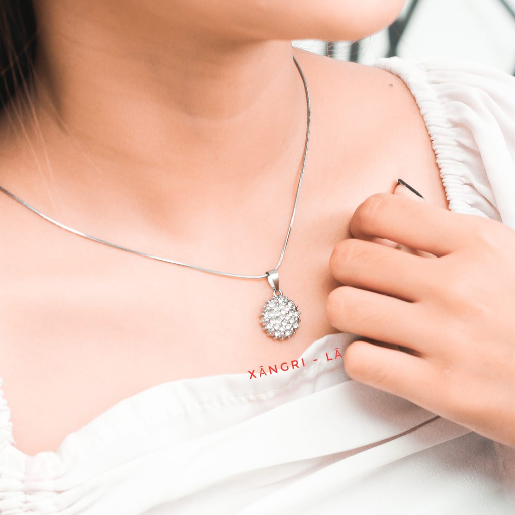 [Bayar Di Tempat] Kalung Wanita Titanium Silver Terbaru Liontin Permata Bulat Anti Karat / Luntur