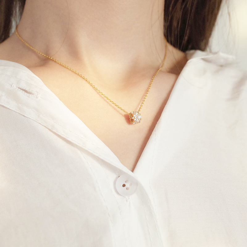 Kalung Liontin Manik Korea Bead Silver/Gold Pendant Necklace Round Crystal Jewelry for Women Romantic Engagement Accessories Gift