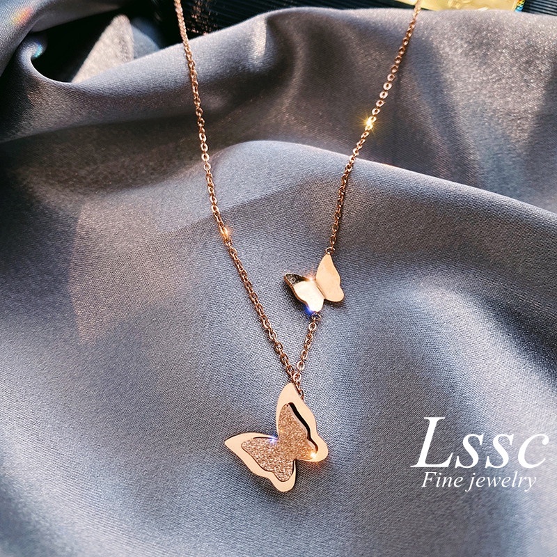 Kalung Titanium Wanita Anti Karat Liontin Kupu Lapis Emas 18K Korea Perhiasan