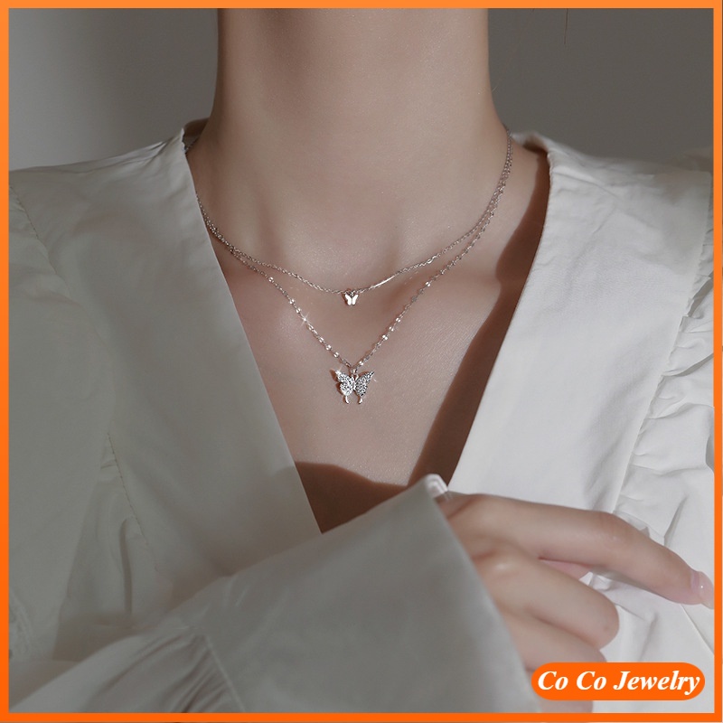 Harga Kalung Rantai Klavikula Model Double Layer Desain Butterfly Gaya Korea