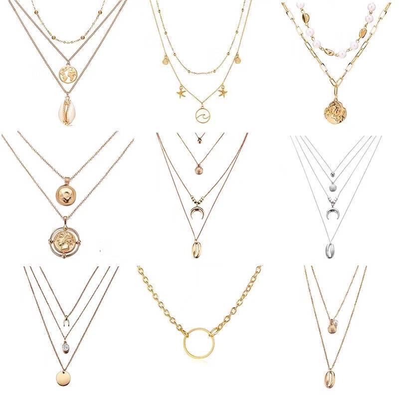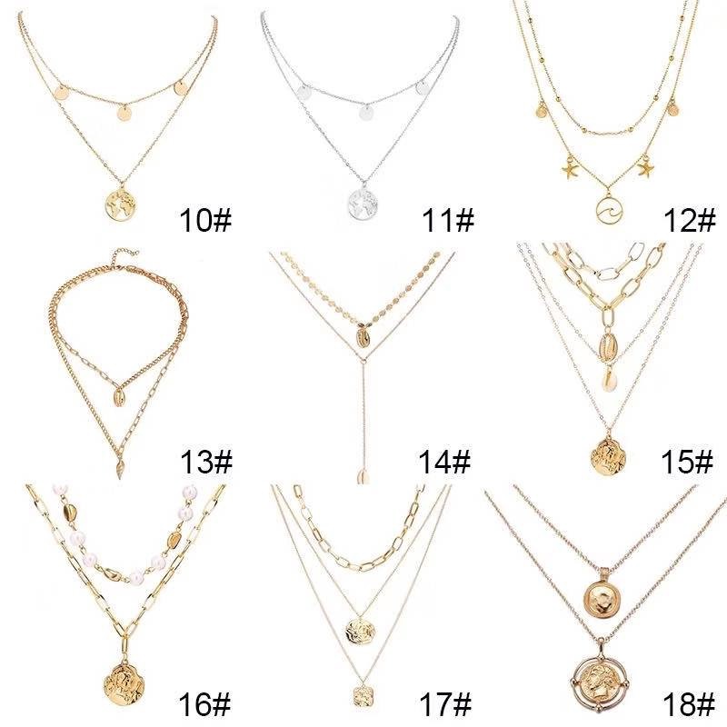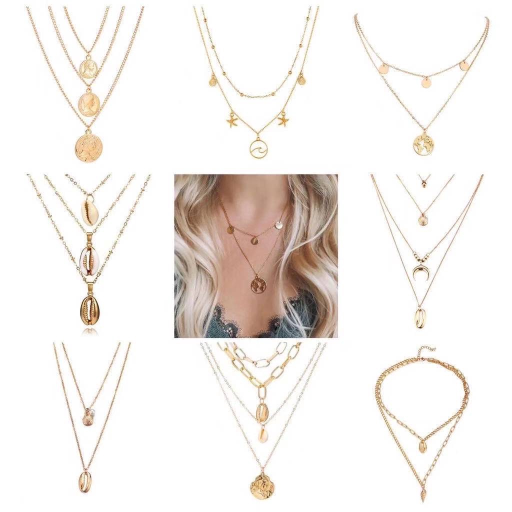 Fashion Retro Multilayer Kalung Emas Korea Bohemian Kepribadian Rantai Liontin Kalung Wanita Perhiasan Aksesoris Hadiah