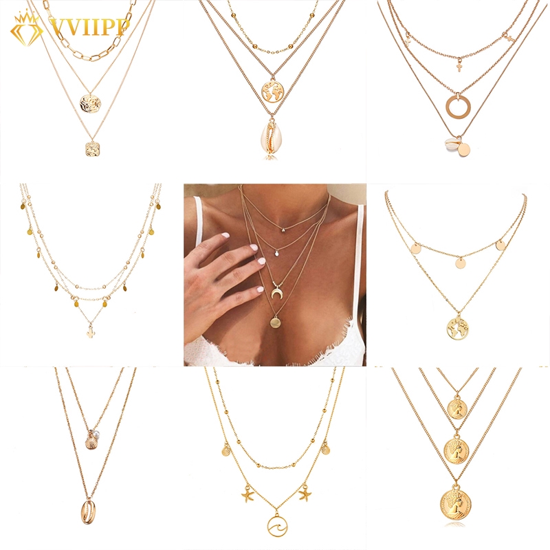 Alasan kenapa harus beli Kalung Rantai Multi Layer Liontin Kerang / Tanduk Kerang Bahan Alloy untuk Wanita Necklace sekarang