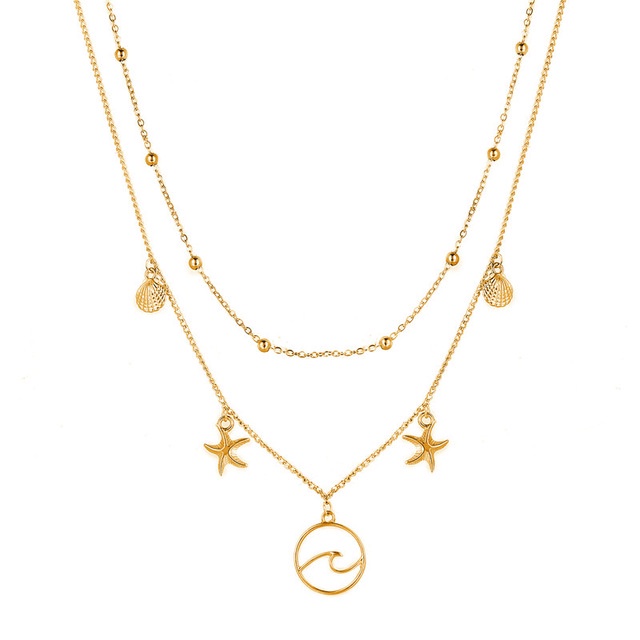 Harga Kalung Rantai Multi Layer Liontin Kerang / Tanduk Kerang Bahan Alloy untuk Wanita Necklace