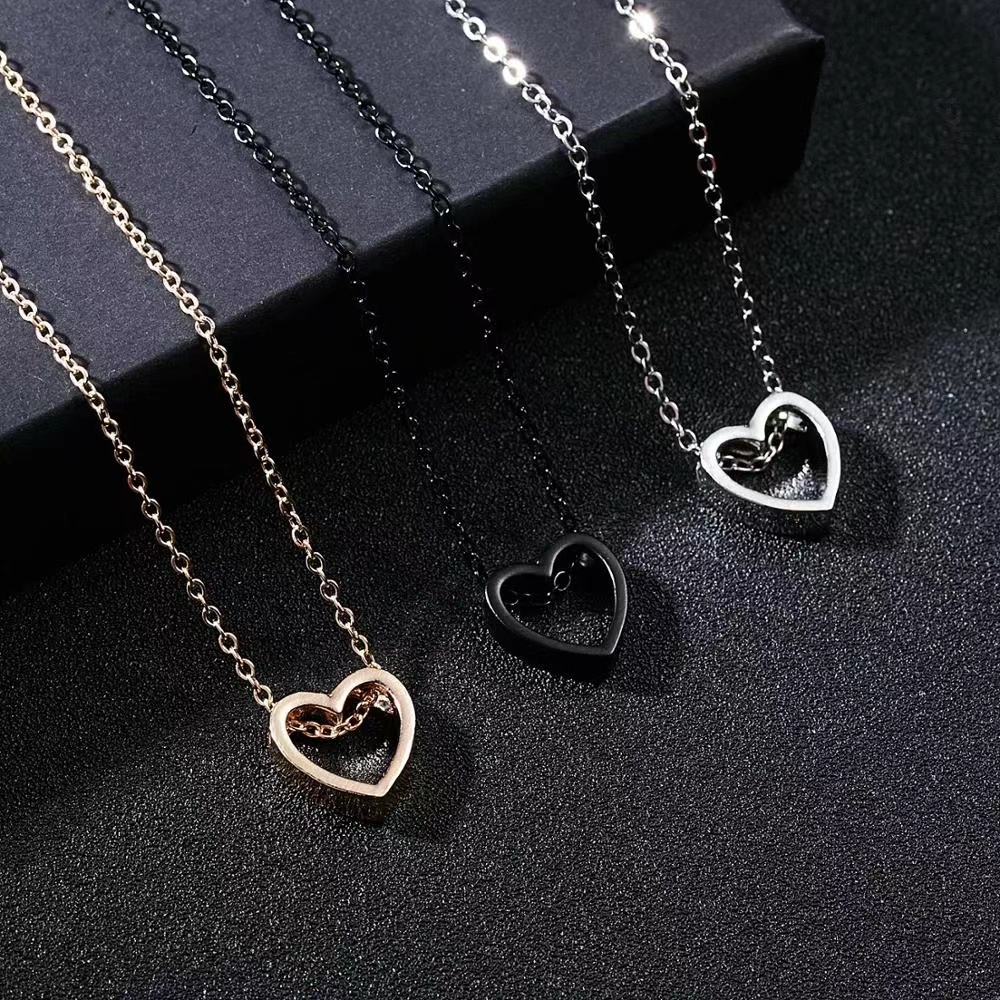 Kalung Fashion Wanita Retro Hollow Heart Love Necklace Korean Import